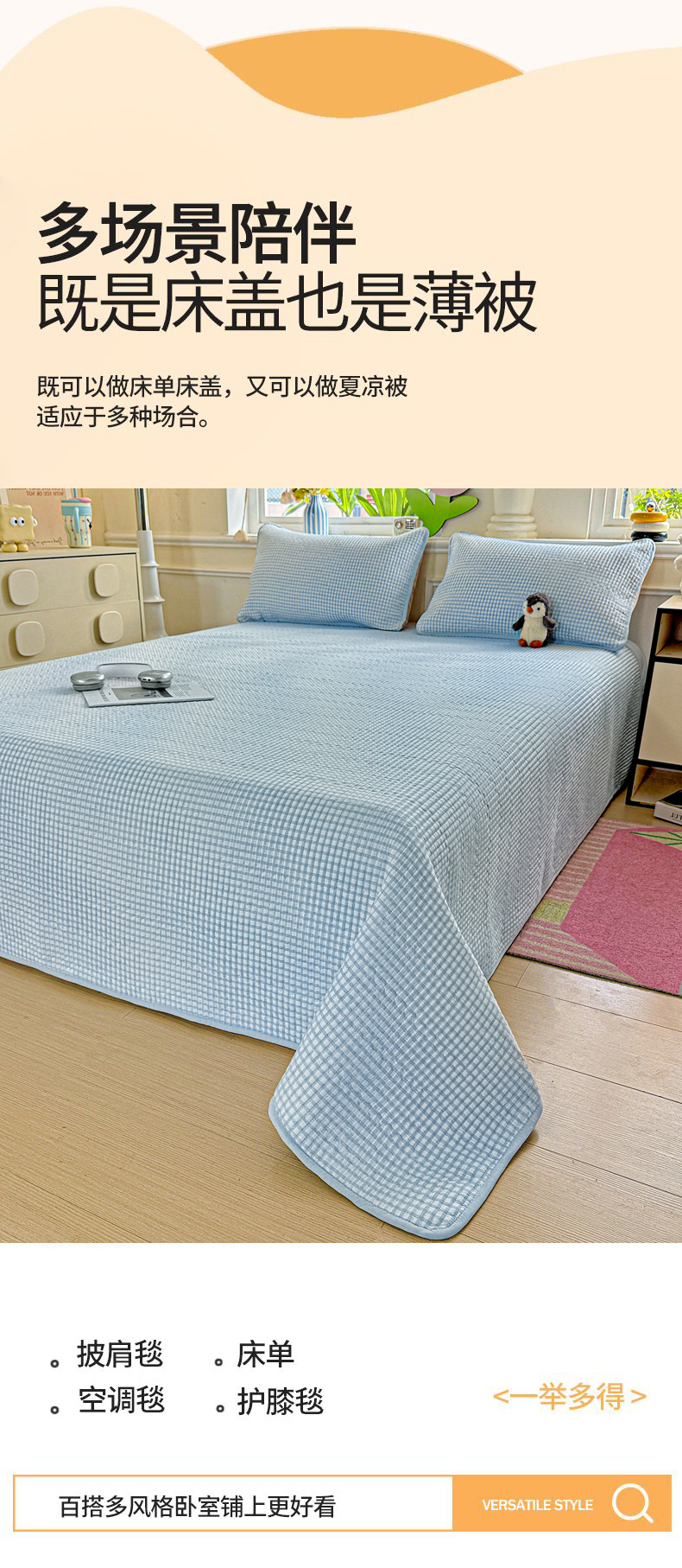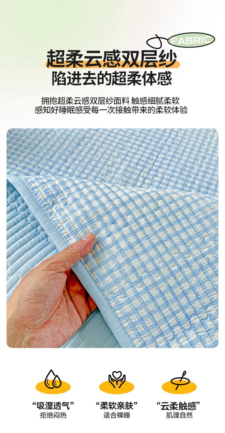 当前位置: 91家纺网 > 商品网购 > 床上用品 > 床盖 > 恒尚居 2025新款双层纱床盖床盖单品单床盖云感夹棉床单床垫软床垫-四季款【系列二】 【天蓝格】双层纱