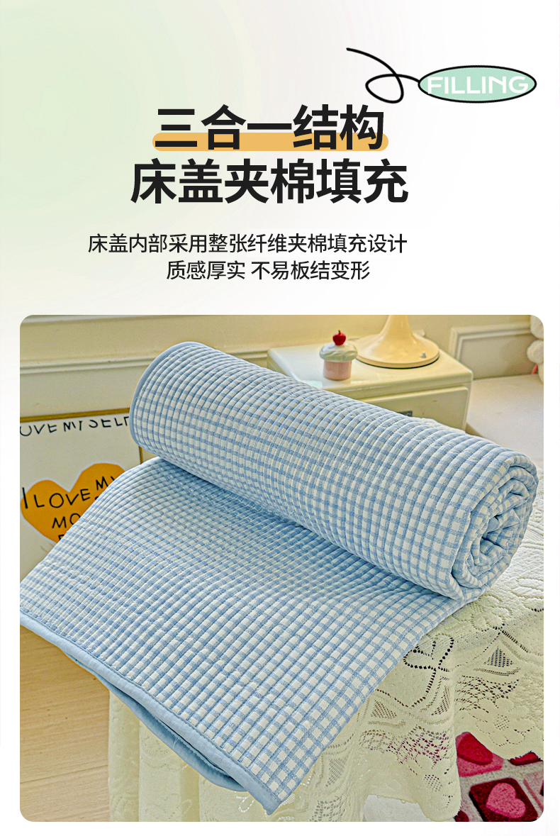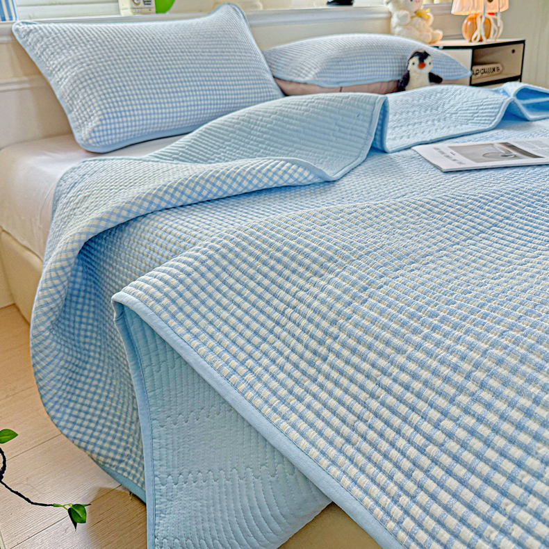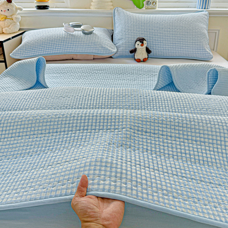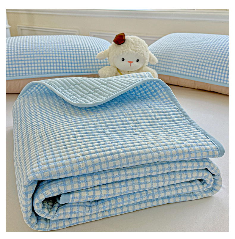 恒尚居 2025新款双层纱床盖床盖单品单床盖云感夹棉床单床垫软床垫-四季款【系列二】 【天蓝格】双层纱