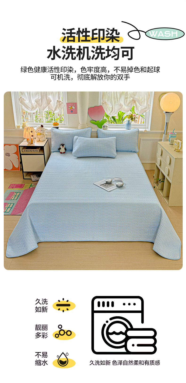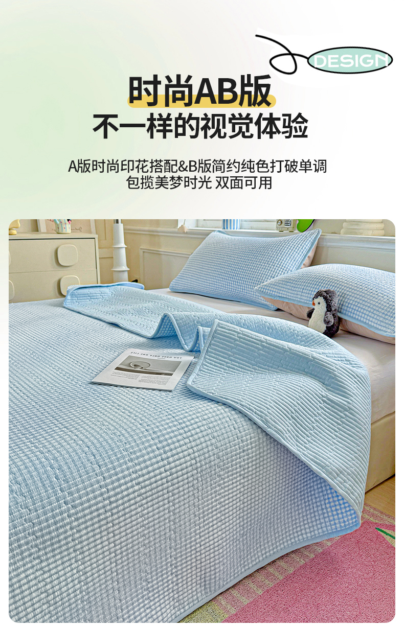 • 91家纺网 家纺一手货源 找家纺 恒尚居 2025新款双层纱床盖床盖单品单床盖云感夹棉床单床垫软床垫-四季款【系列二】 【天蓝格】双层纱