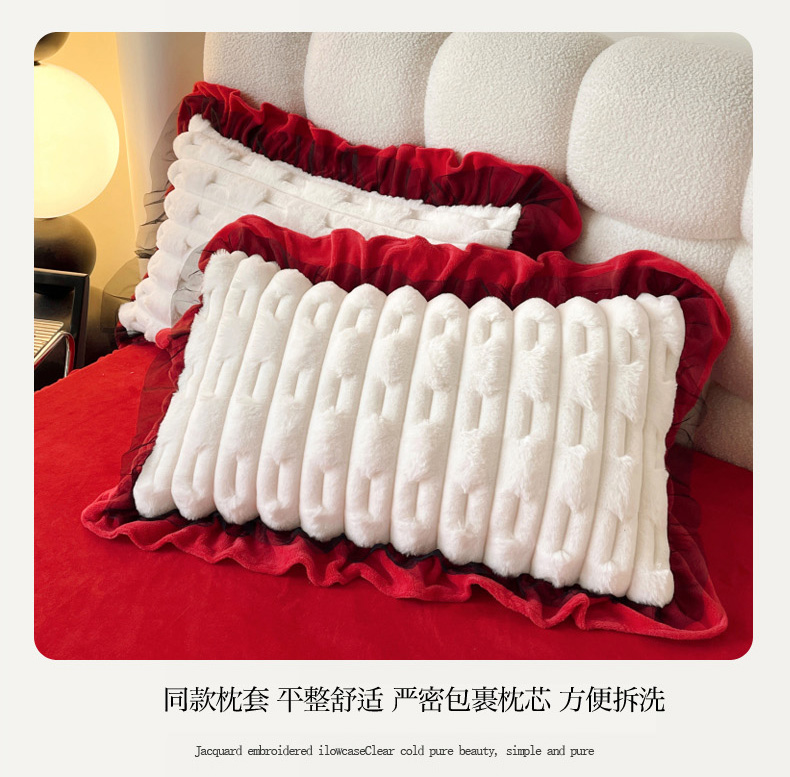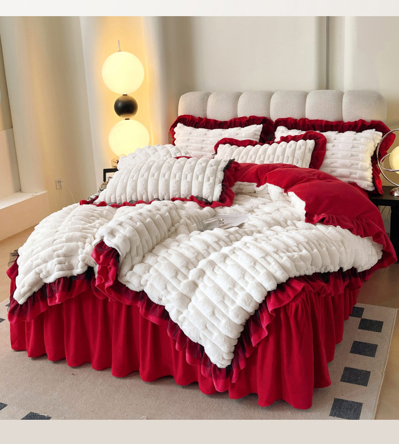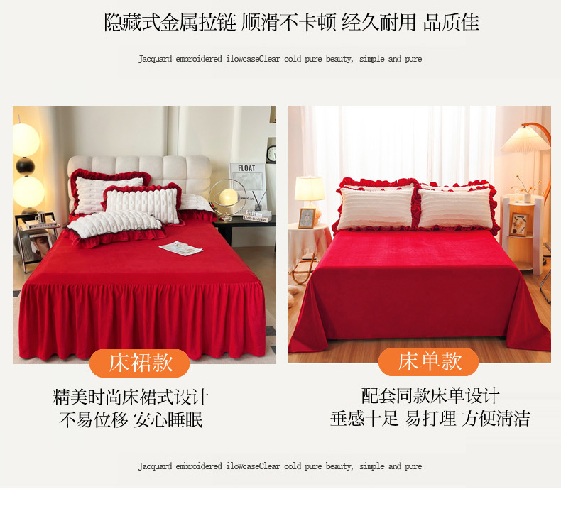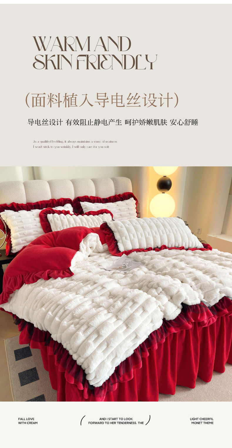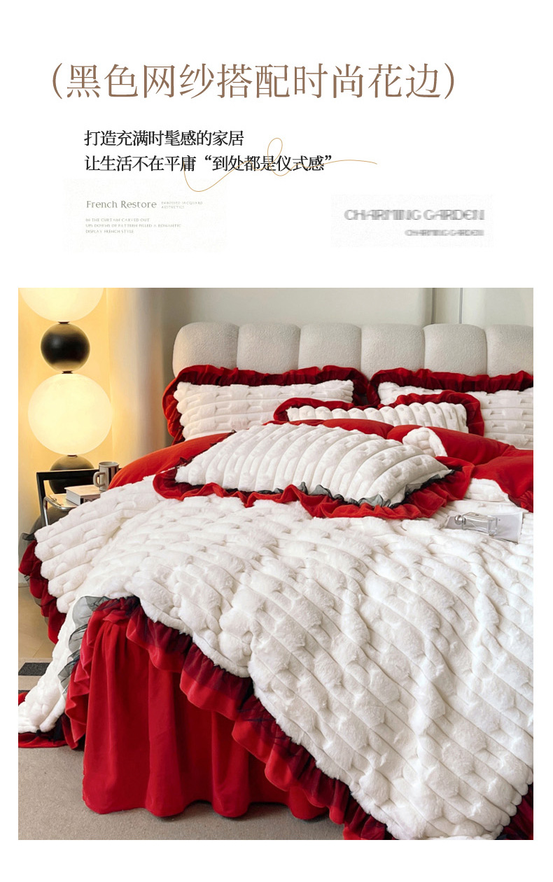 当前位置: 91家纺网 > 商品网购 > 床品套件 > 四件套 > 牛奶绒四件套 > 睡美人 2025韩版兔绒提花牛奶绒床裙床单床笠款四件套 兔绒提花-大红色