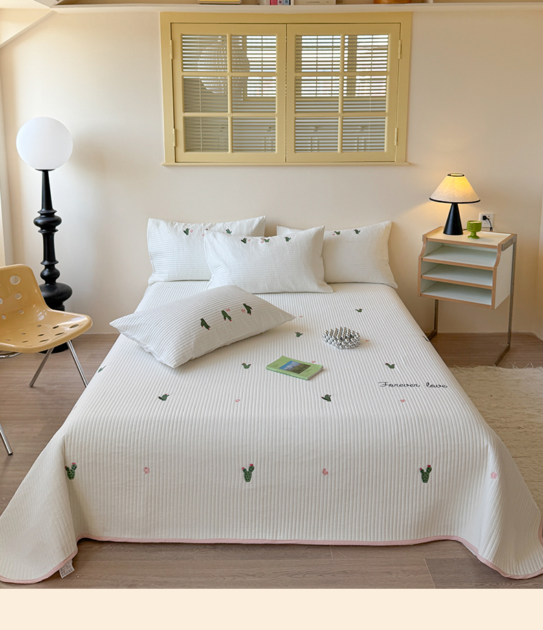 优悦生活馆 2025新款皱皱纱夹棉刺绣系列床盖 仙人掌-白
