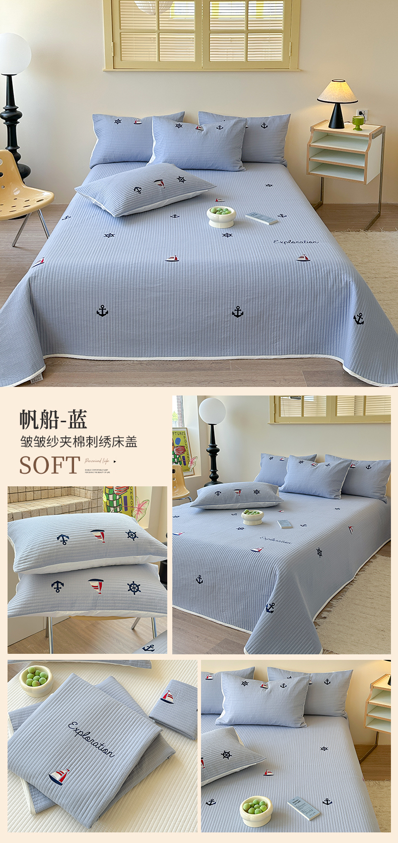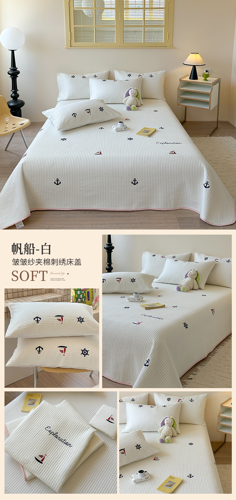 • 91家纺网 家纺一手货源 找家纺 优悦生活馆 2025新款皱皱纱夹棉刺绣系列床盖 仙人掌-白