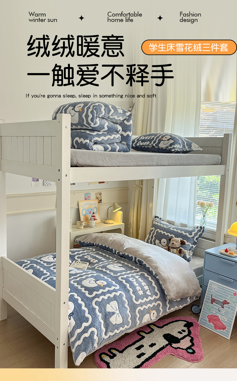 当前位置: 91家纺网 > 商品网购 > 床品套件 > 三件套 > 川悦生活 2025新款雪花绒宿舍床笠款三件套 快乐鸭鸭