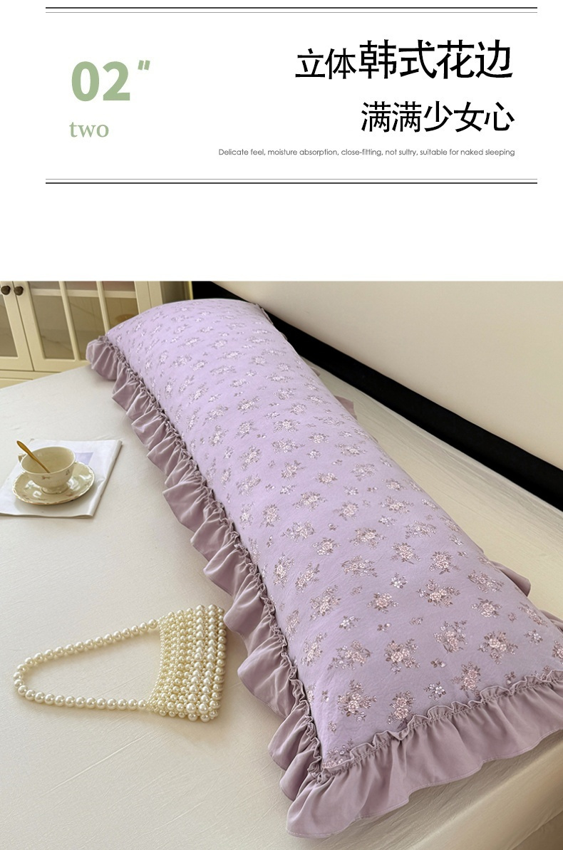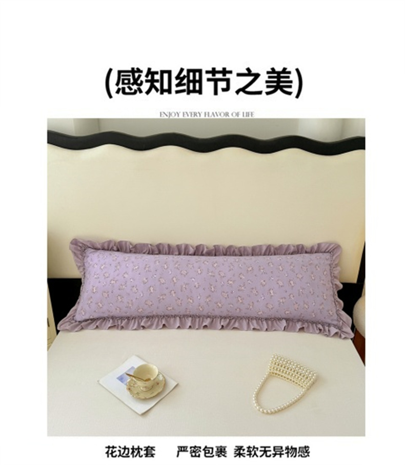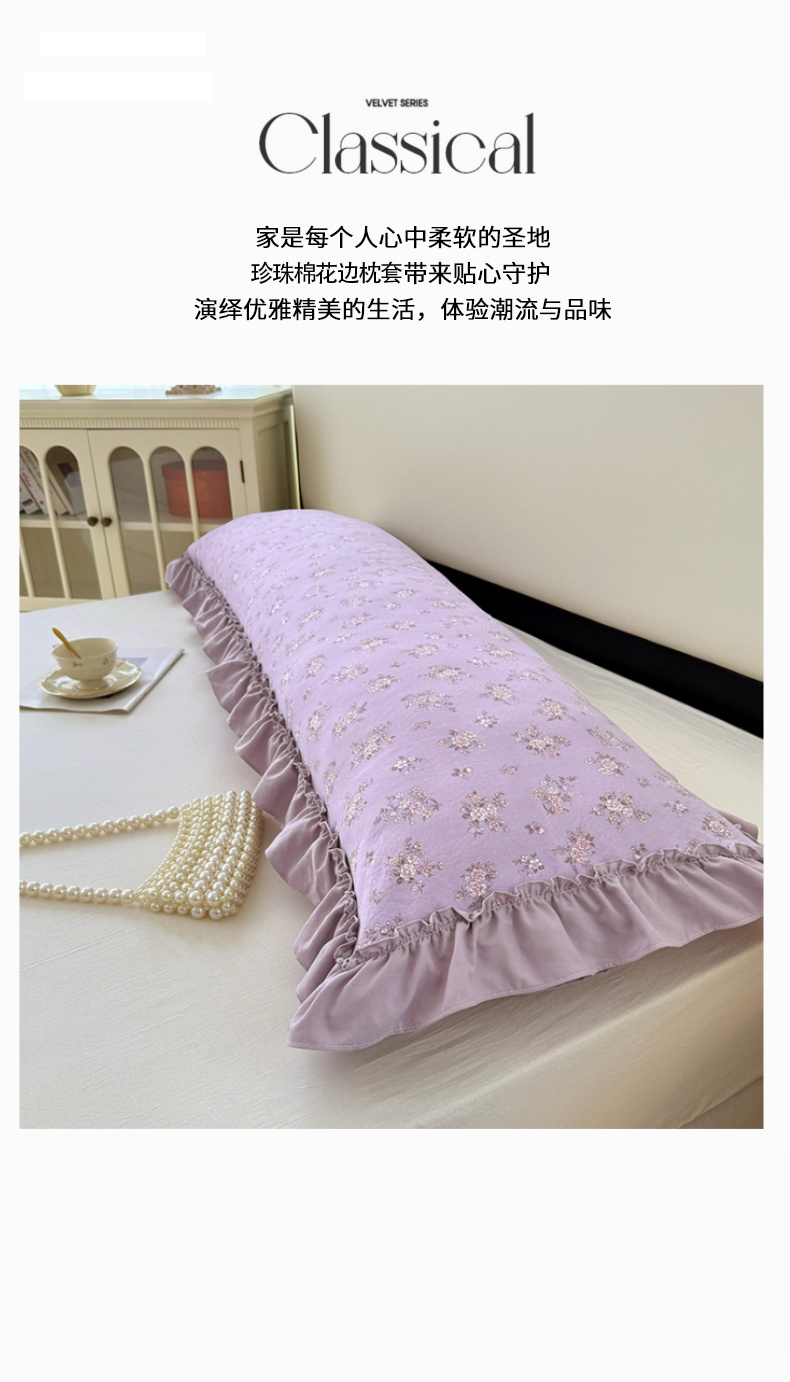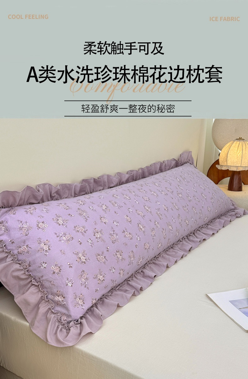 商品名称:梦舒羽 2025新款水洗珍珠棉花边枕套加长双人情侣1.8米枕芯内胆套1.5m枕头套 紫倾心
