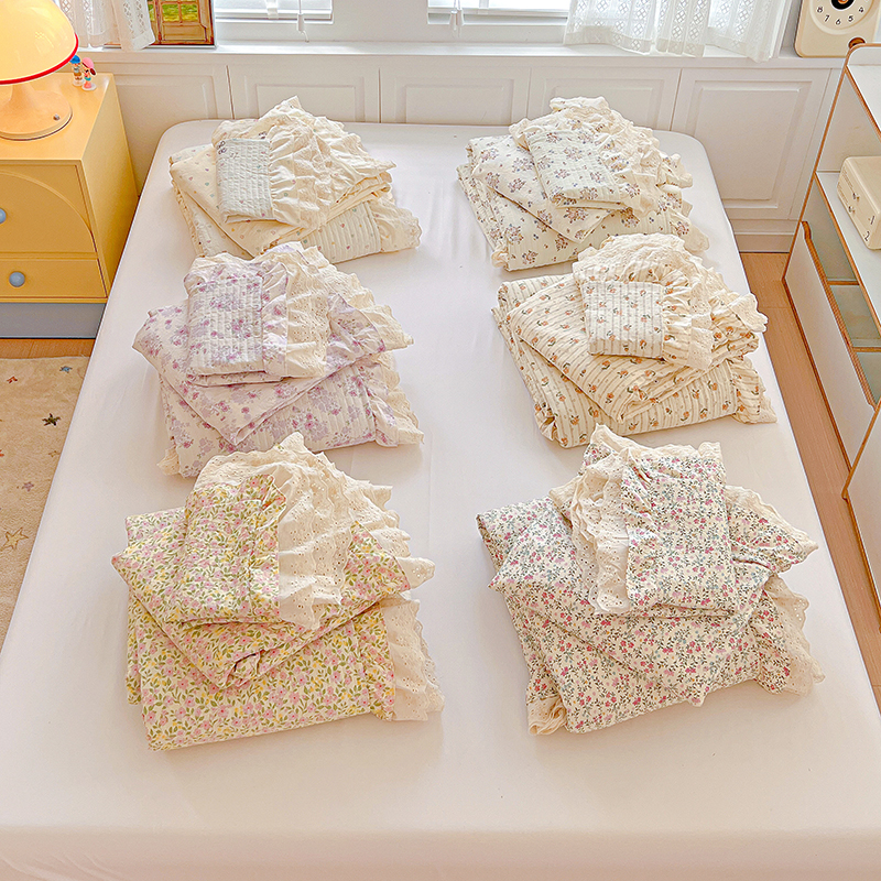 (总)梦莱斯 2025新款田园碎花纯棉花边四件套-床盖款,采薇,花精灵,花开半夏,莱茵,恋爱季,绿叶仙踪,糜花似锦,糜花熙悦,秘境花园