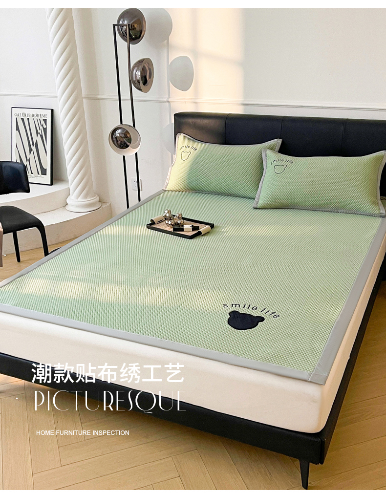 当前位置: 91家纺网 > 商品网购 > 床上用品 > 凉席 > 其他凉席 > 小叮当家纺仓储工厂店 2025新款冰豆豆贴布绣八宝熊系列绑带床席款(场景一) 绑带款-八宝熊-绿