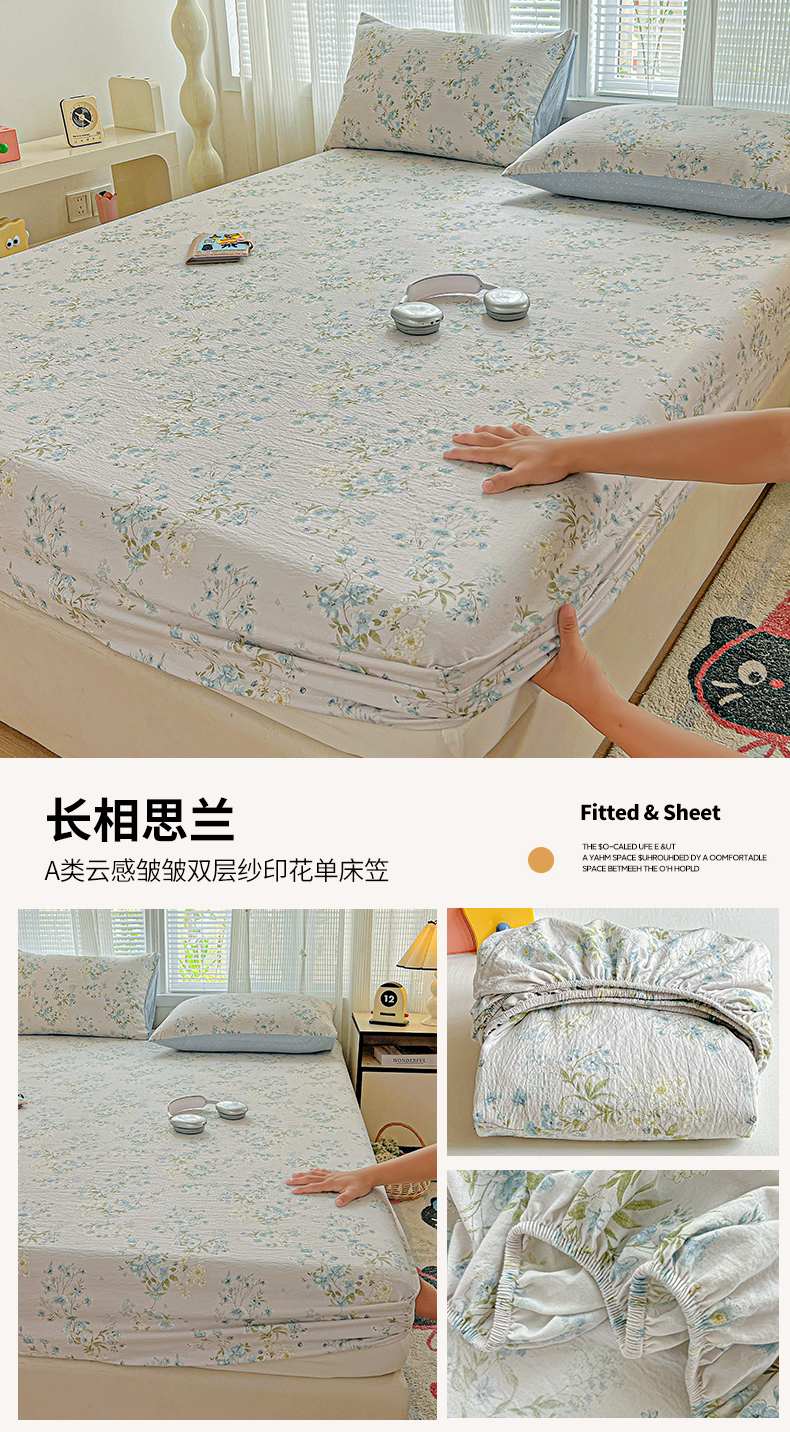 格真 2025秋冬新款110克高克重提花加厚皱皱纱双层纱印花单床笠 长相思兰