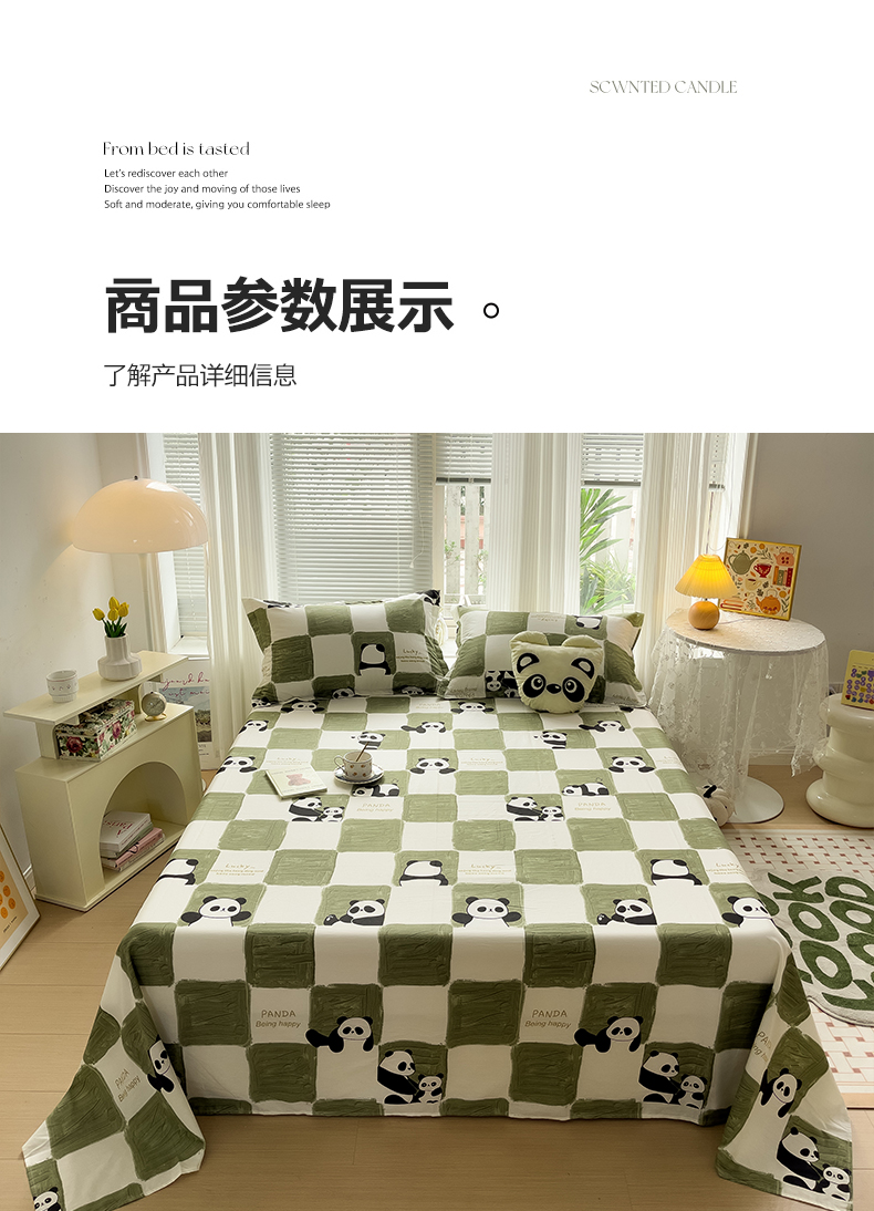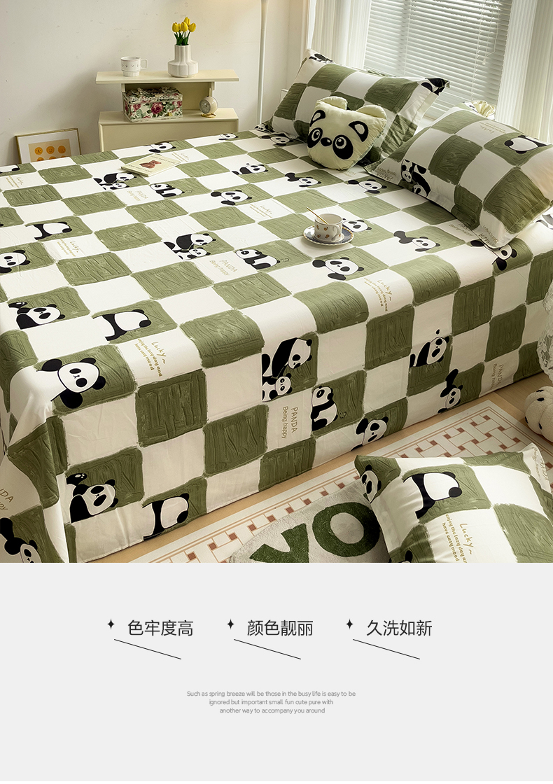 商品名称:金盛纺 2025新款13372全棉印花单品床单 熊猫胖达