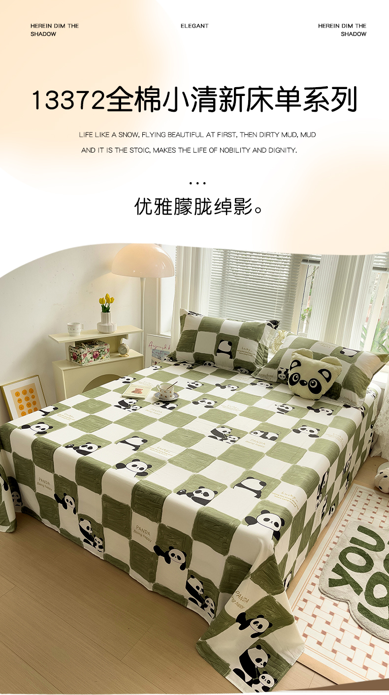 金盛纺 2025新款13372全棉印花单品床单 熊猫胖达