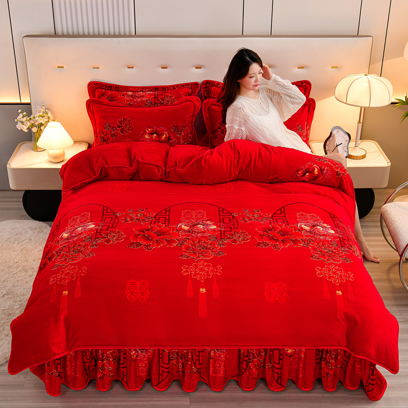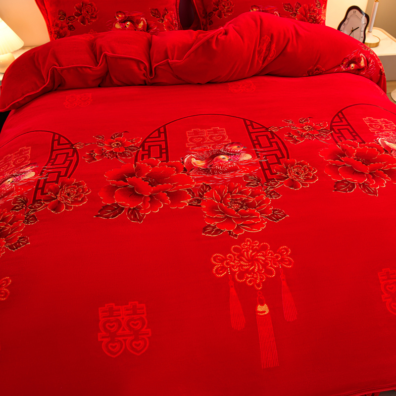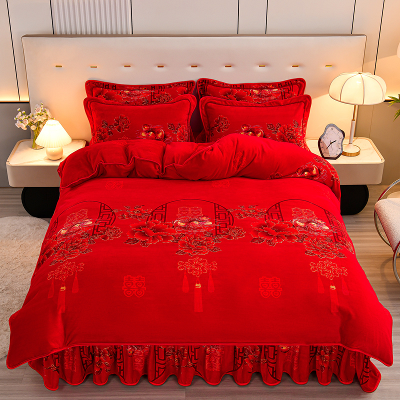 当前位置: 91家纺网 > 商品网购 > 床品套件 > 四件套 > 牛奶绒四件套 > 2025新款230克8.5斤加厚高克重牛奶绒金貂绒法莱绒四件套冬季加绒法兰绒床裙款 喜结良缘