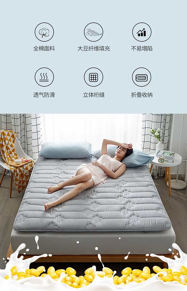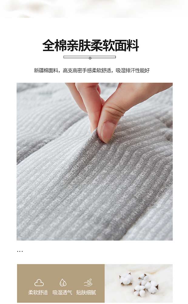 商品名称:红淳家纺 2025新款全棉床垫学生宿舍床褥家用床垫子 灰色全棉透气床垫