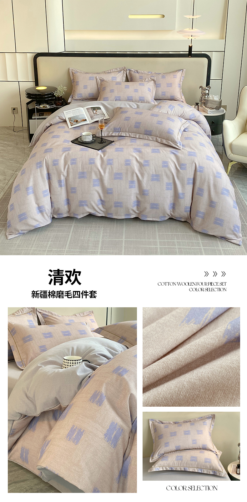 (总)梧桐树 2025新款纯色双拼100%棉磨毛全棉纯棉四件套,风青月白,焦糖曲奇,蓝韵雾纱,暮砂粉,南极蓝,山茶杏,烟墨灰,樱雪黄,云纱可可,紫粟灰