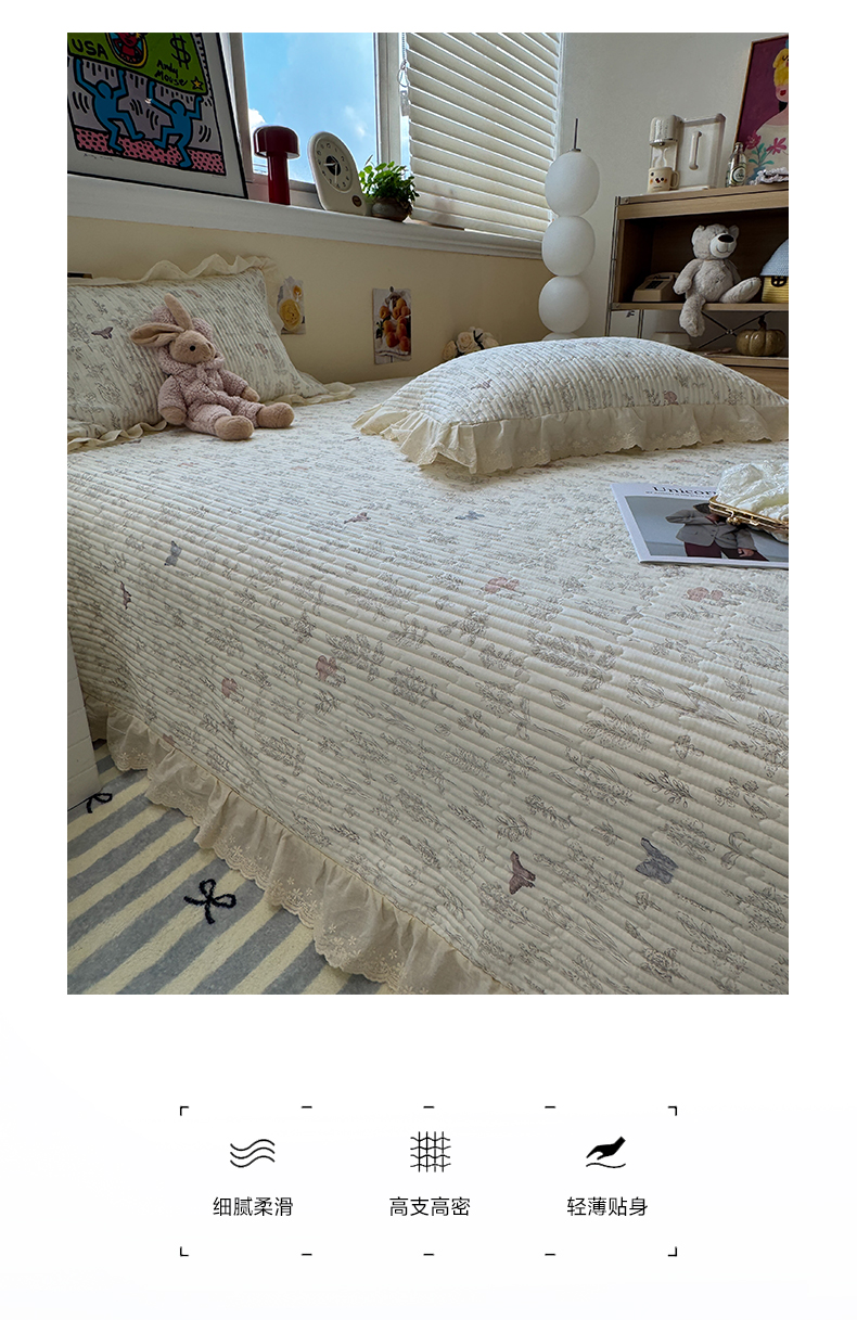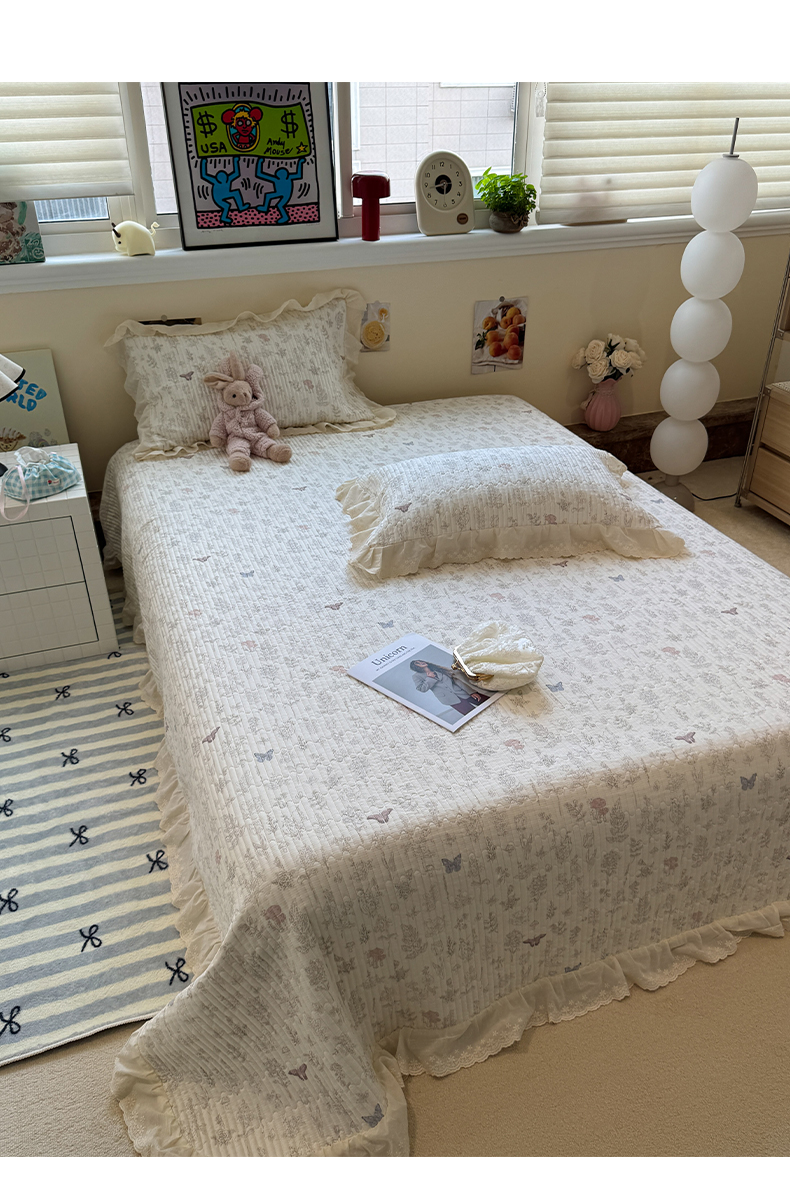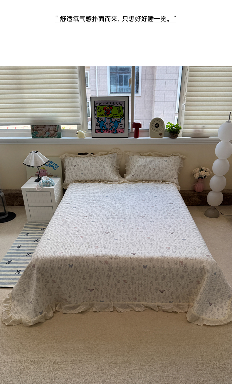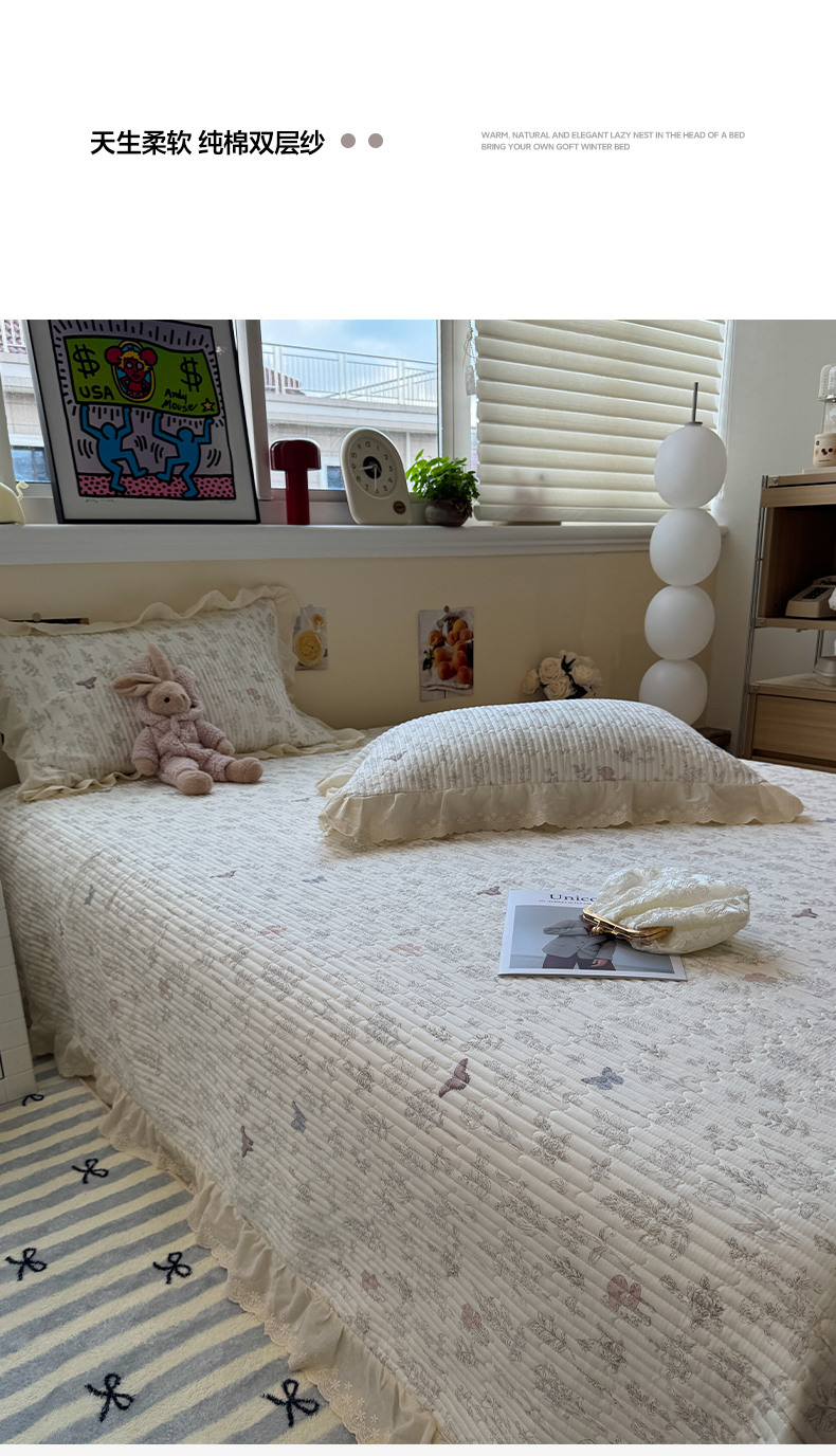 一加一 2025新款全棉纯棉双层纱田园风单床盖床盖单件单品床盖 画棠春