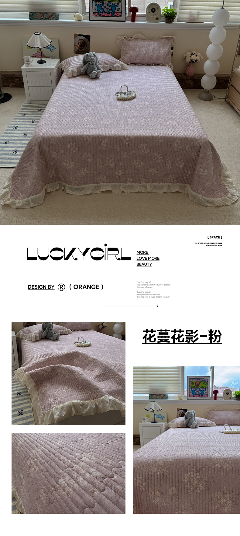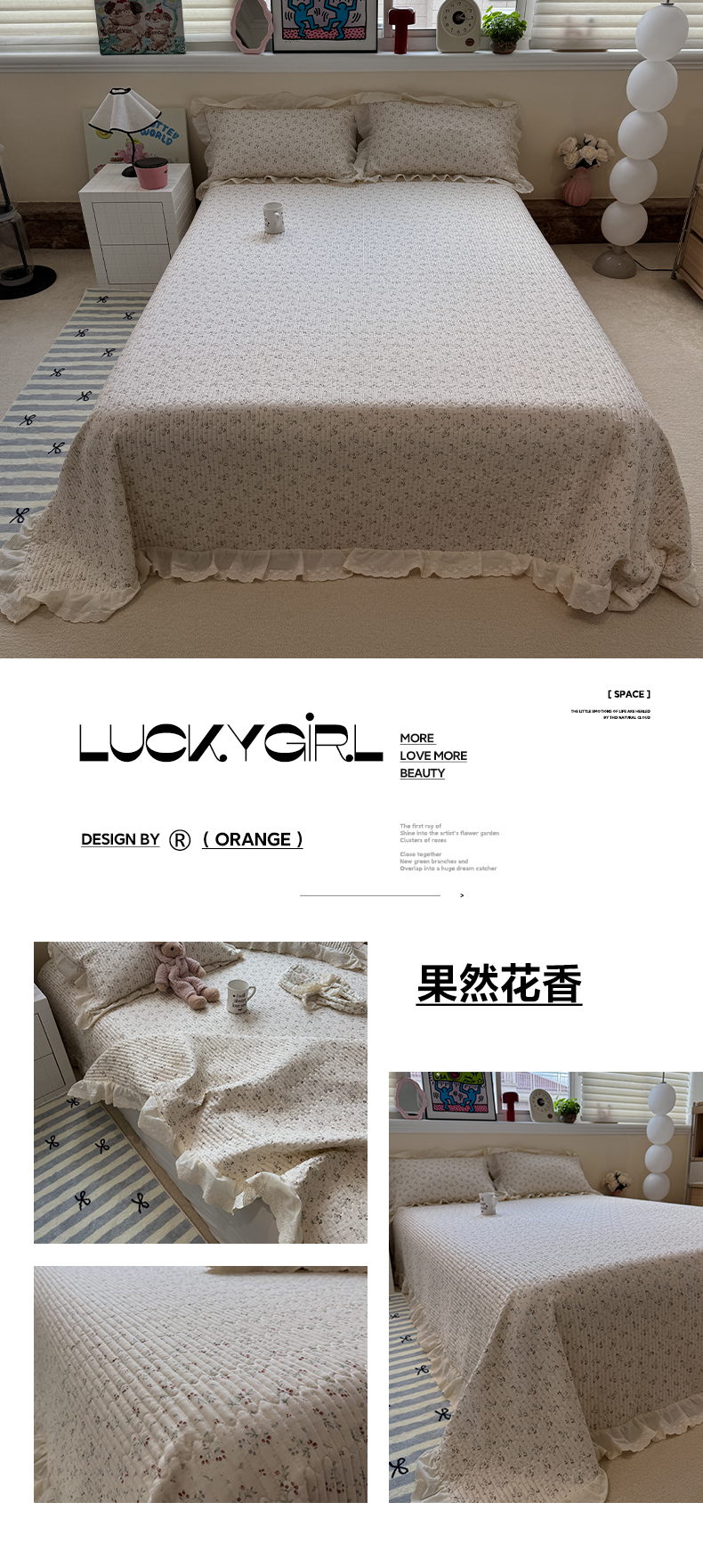 商品名称:一加一 2025新款全棉纯棉双层纱田园风单床盖床盖单件单品床盖 画棠春