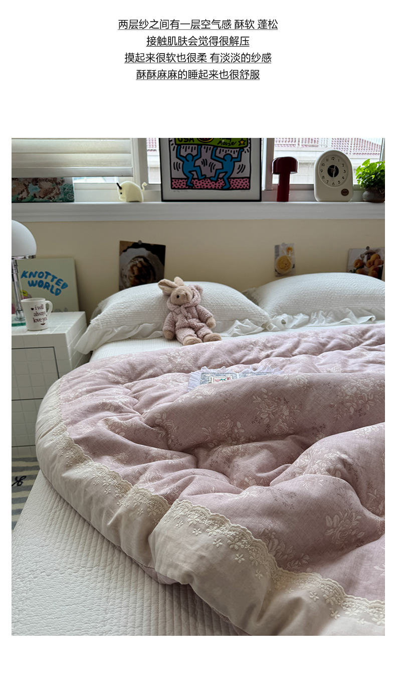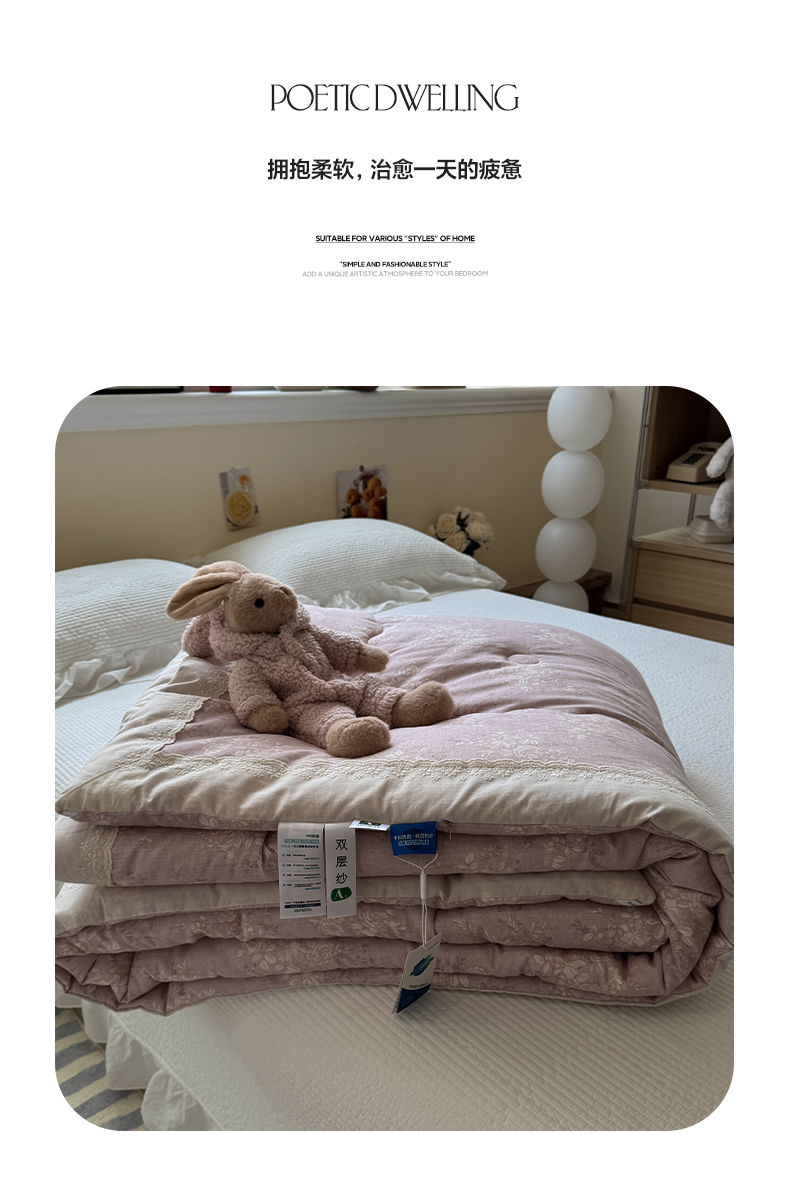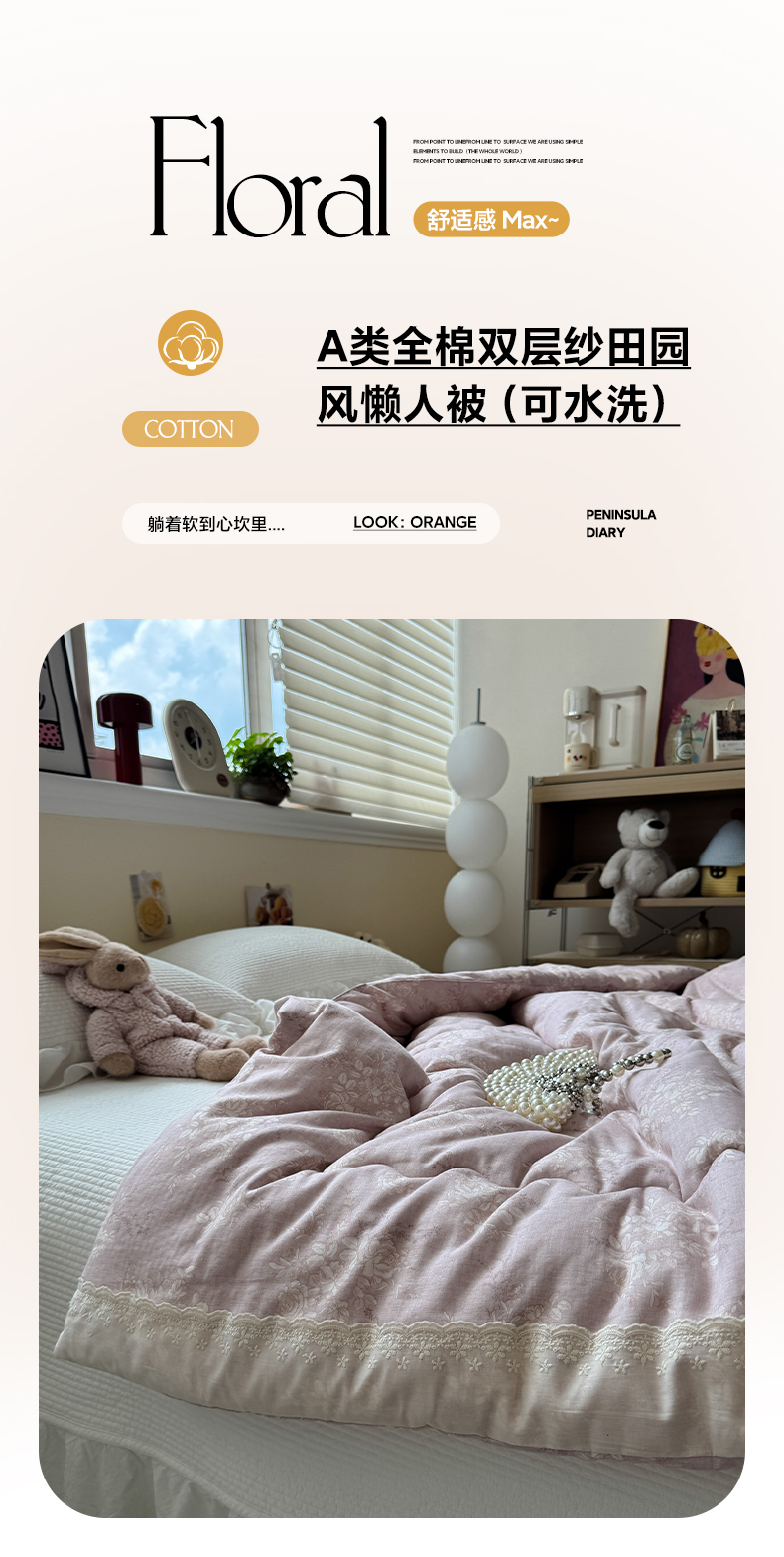 • 91家纺网 家纺一手货源 找家纺 一加一 2025新款A类全棉纯棉双层纱田园风懒人被冬被被子被芯(可水洗) 花蔓花影-粉