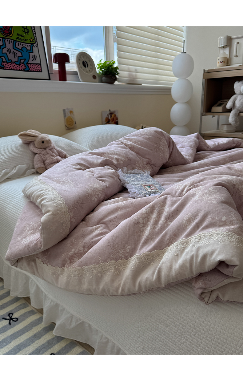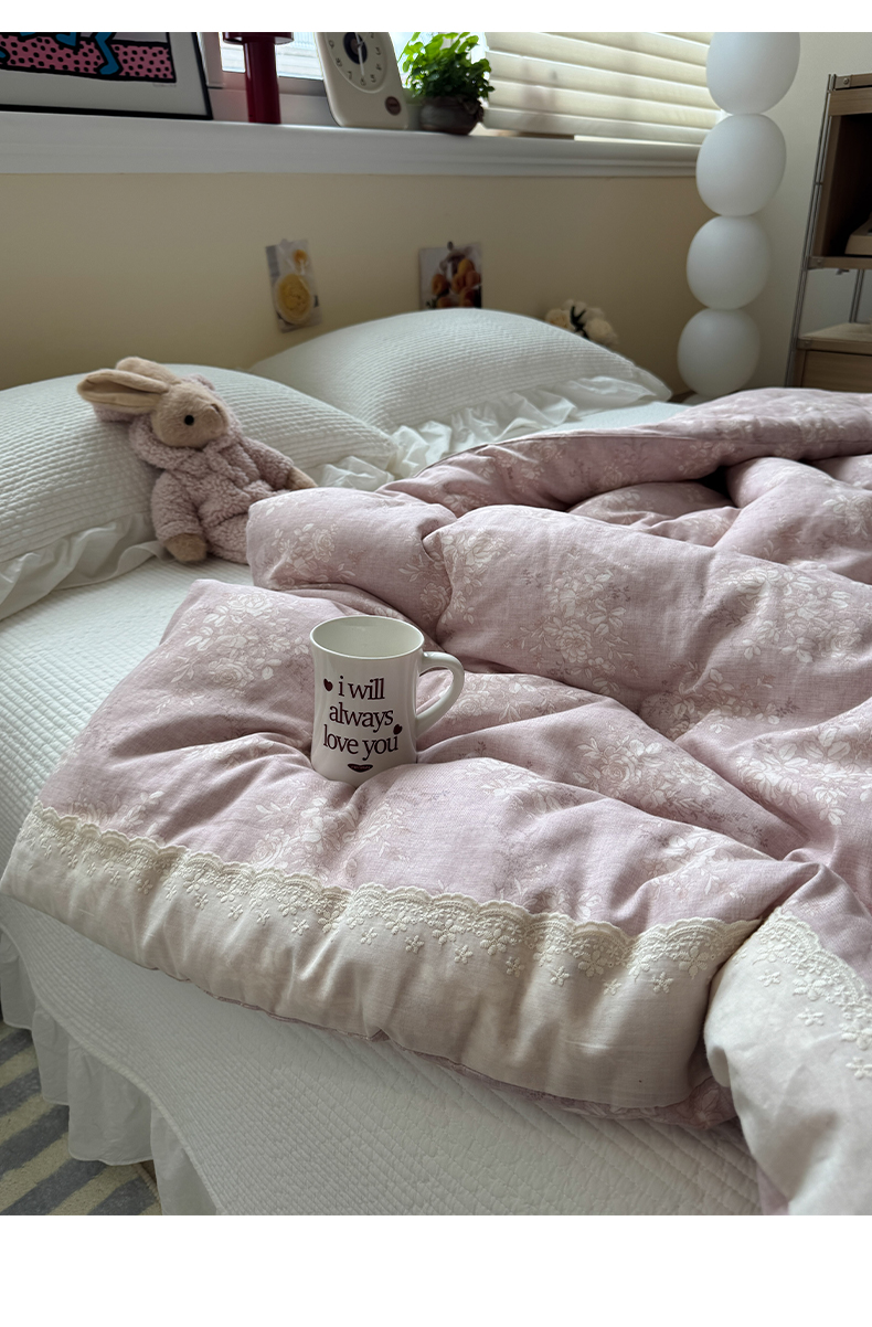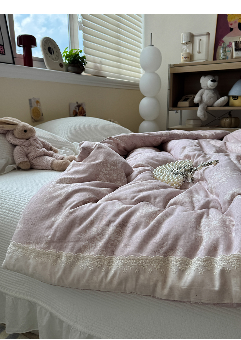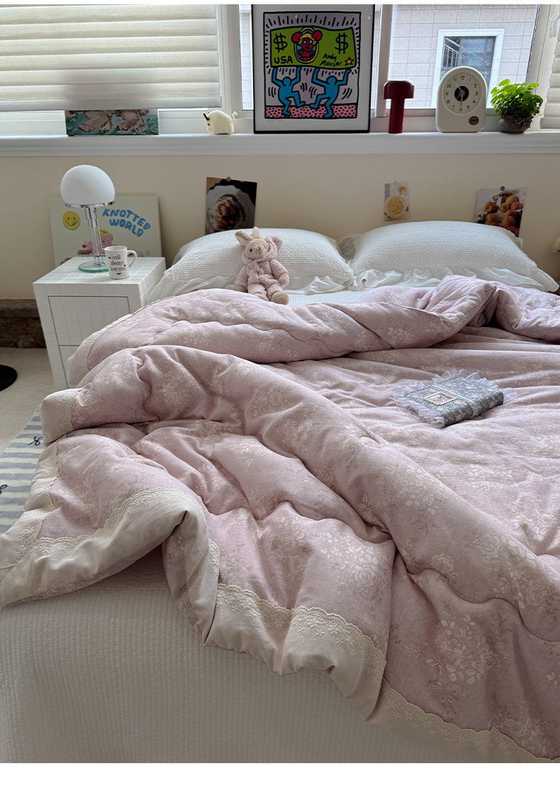 • 91家纺网 家纺一手货源 找家纺 一加一 2025新款A类全棉纯棉双层纱田园风懒人被冬被被子被芯(可水洗) 花蔓花影-粉