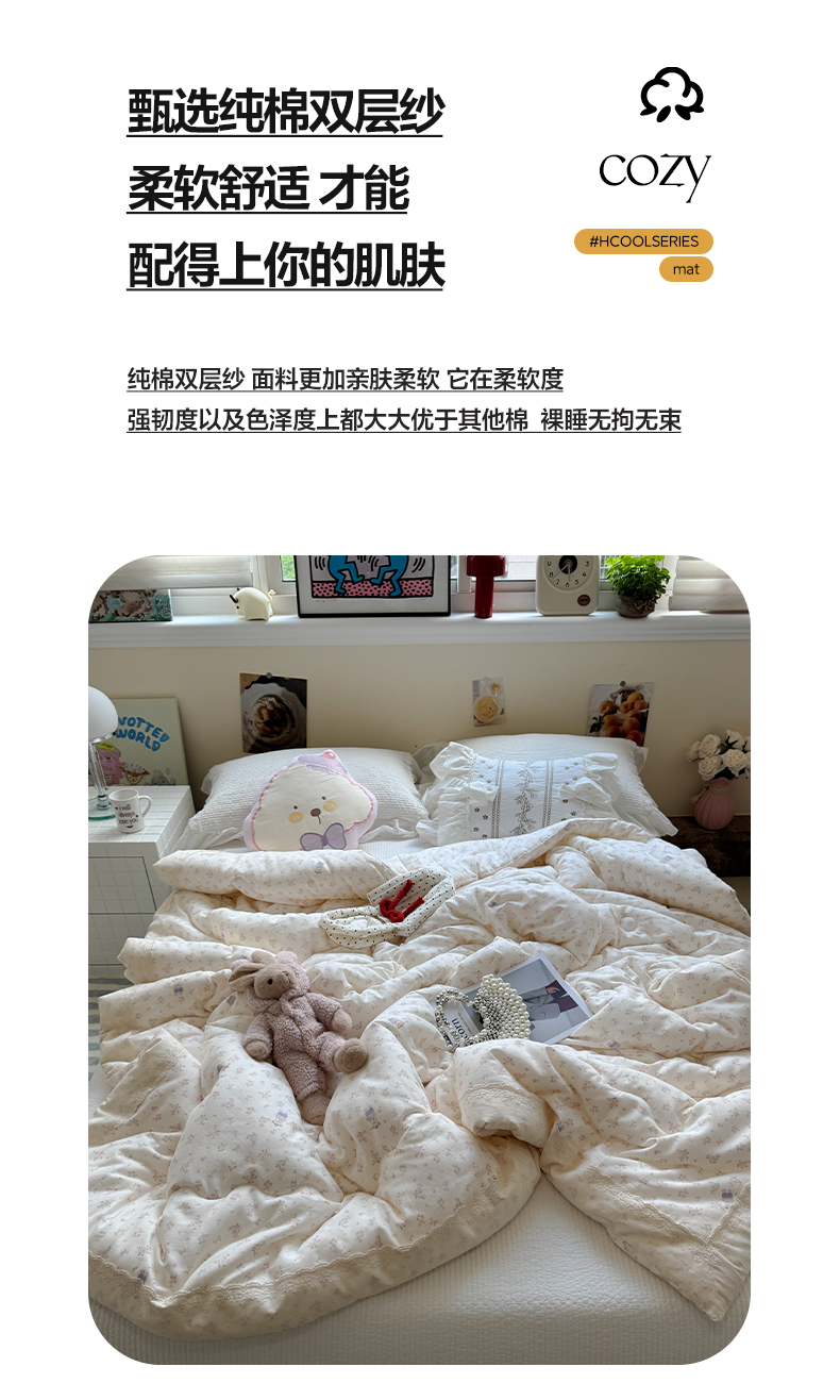 (总)一加一 2025新款40全棉双层纱印花中科抗菌被子四件套,暗香,初春,花镜,花言,蓝萱,沐风,赛琳娜,苏里南,遇见