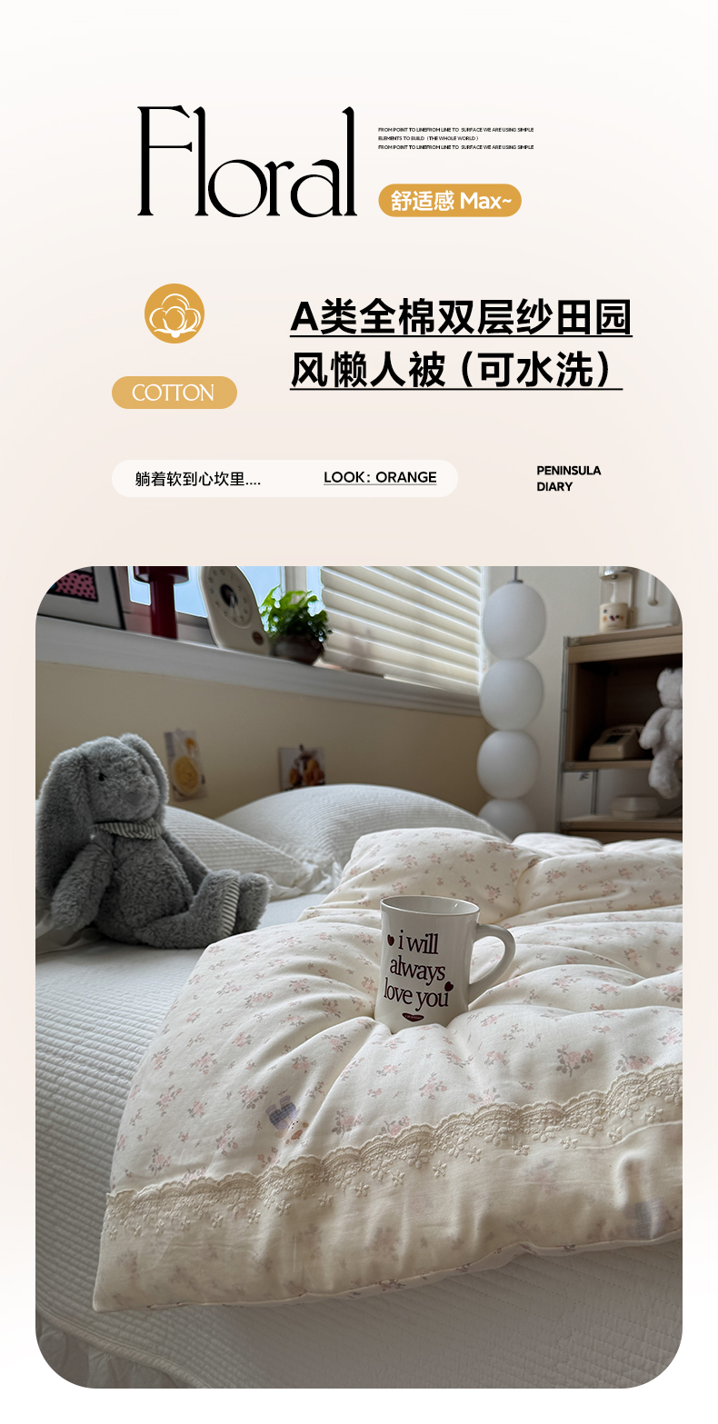 • 91家纺网 家纺一手货源 找家纺 一加一 2025新款A类全棉纯棉双层纱田园风懒人被冬被被子被芯(可水洗) 钥匙珊瑚