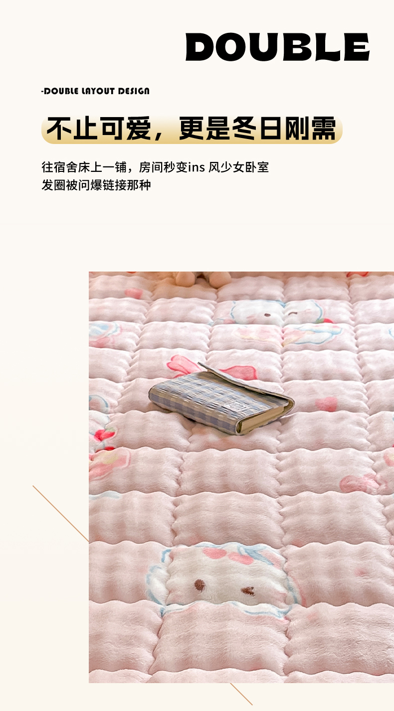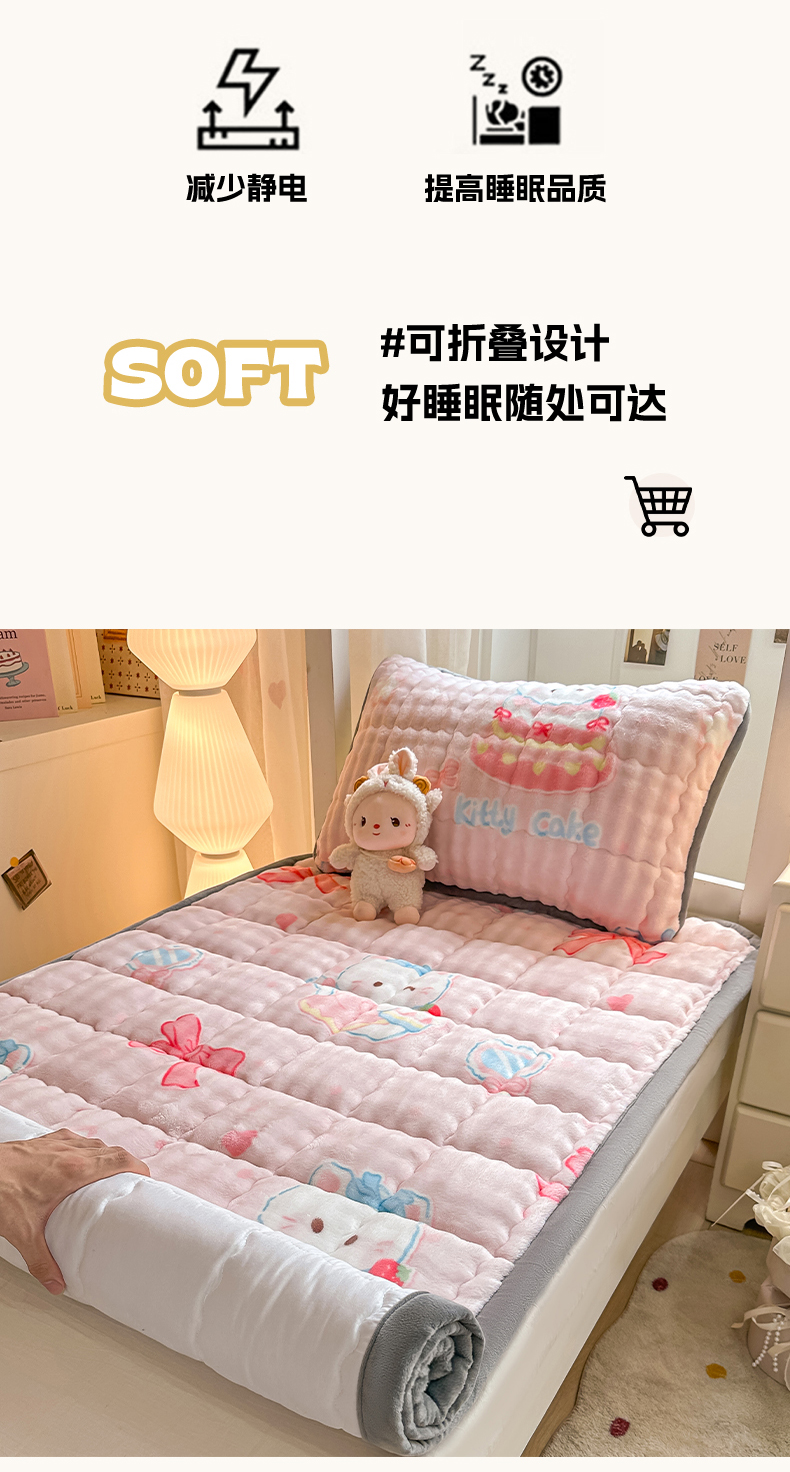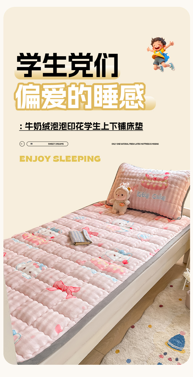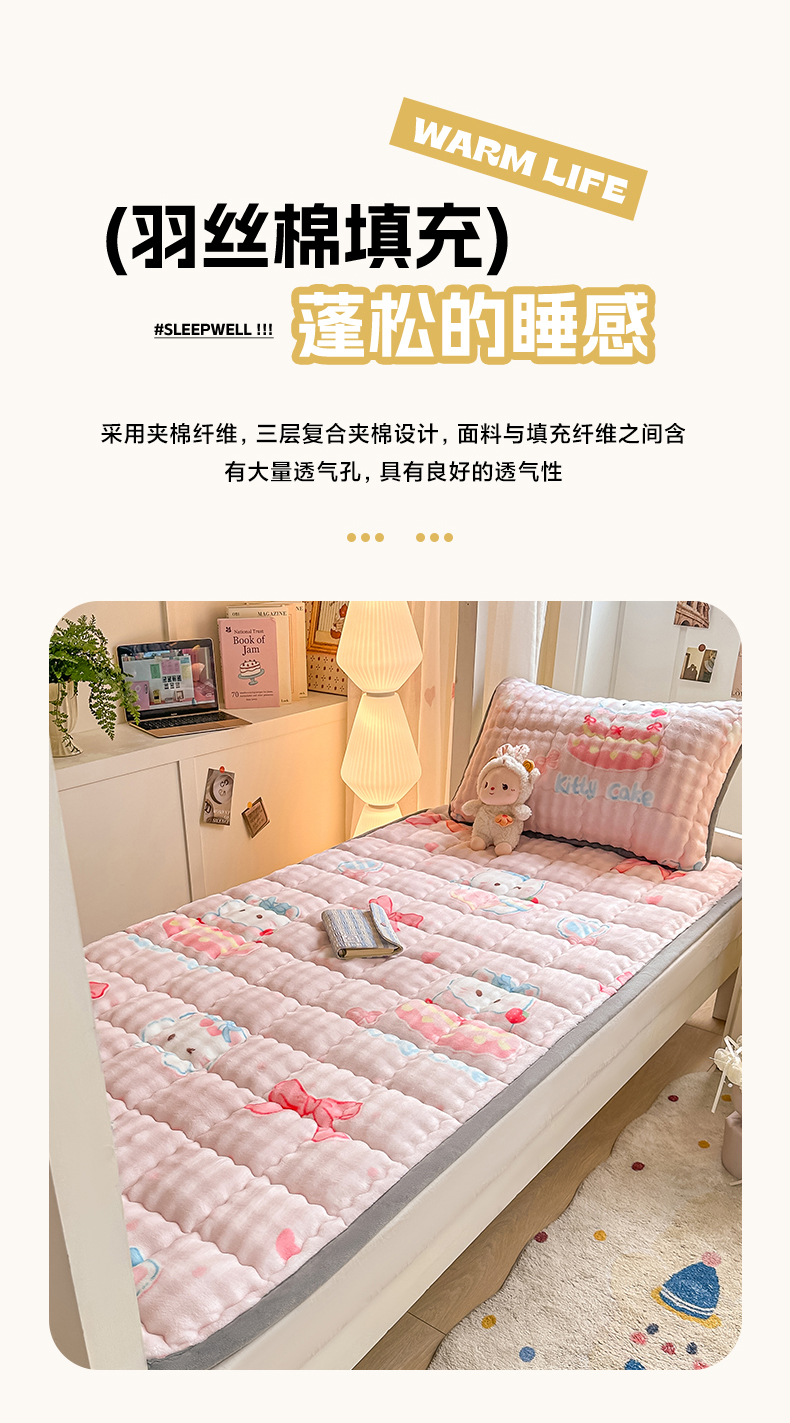 当前位置: 91家纺网 > 商品网购 > 床垫/床褥 > 普通床垫 > 眠势力 2025新款牛奶绒泡泡床褥加绒仿兔毛绒床褥子秋冬保暖珊瑚绒夹棉学生上下铺床护垫 樱桃猫咪