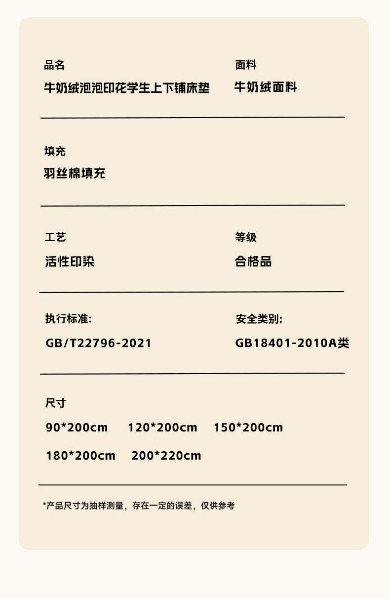 200*220cm(横向花型)单件床褥 | ¥49.00 |