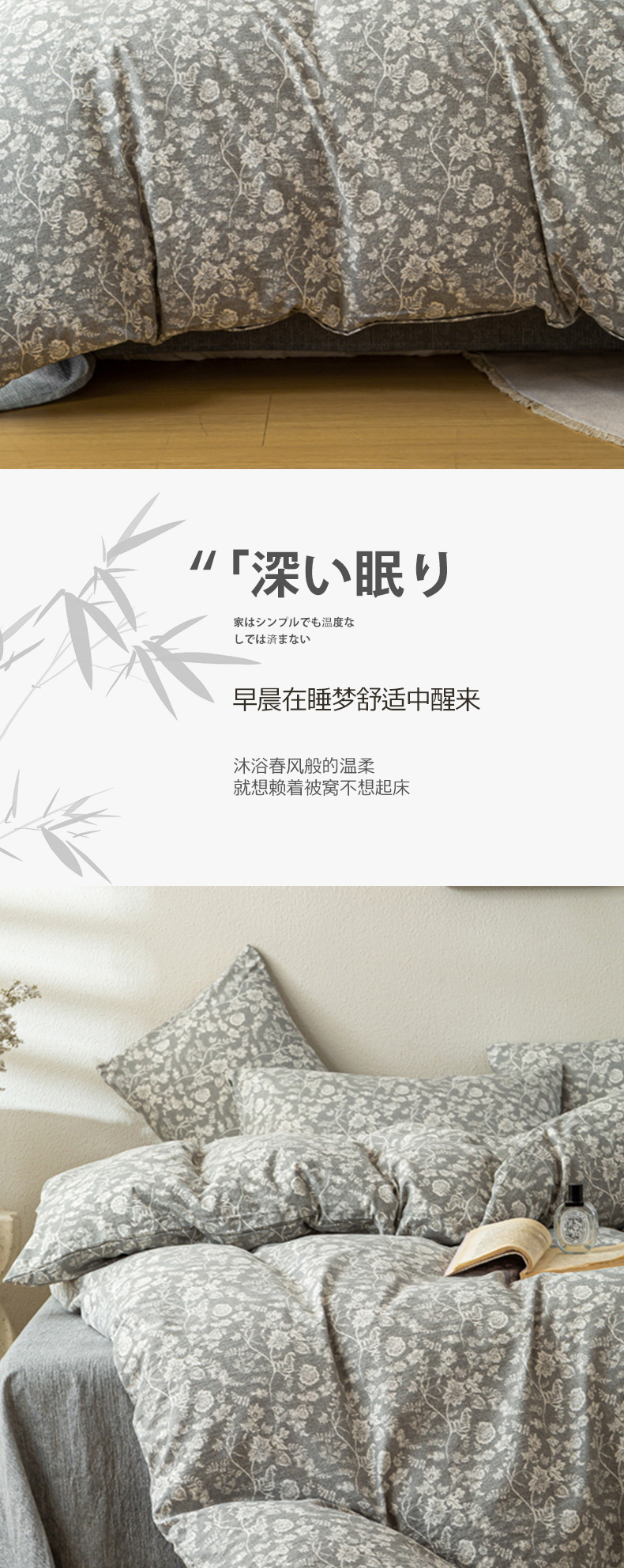 漫仙阁家纺 2025新款加厚高克重原麻复古风印花四件套 锦簇