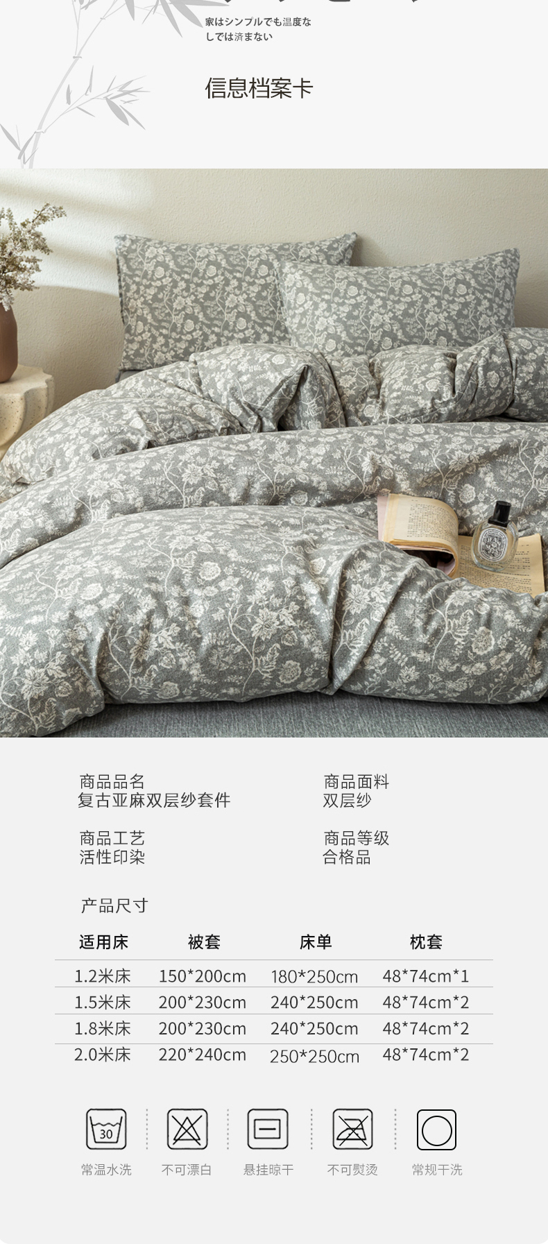 商品名称:漫仙阁家纺 2025新款加厚高克重原麻复古风印花四件套 锦簇
