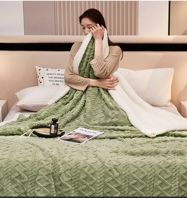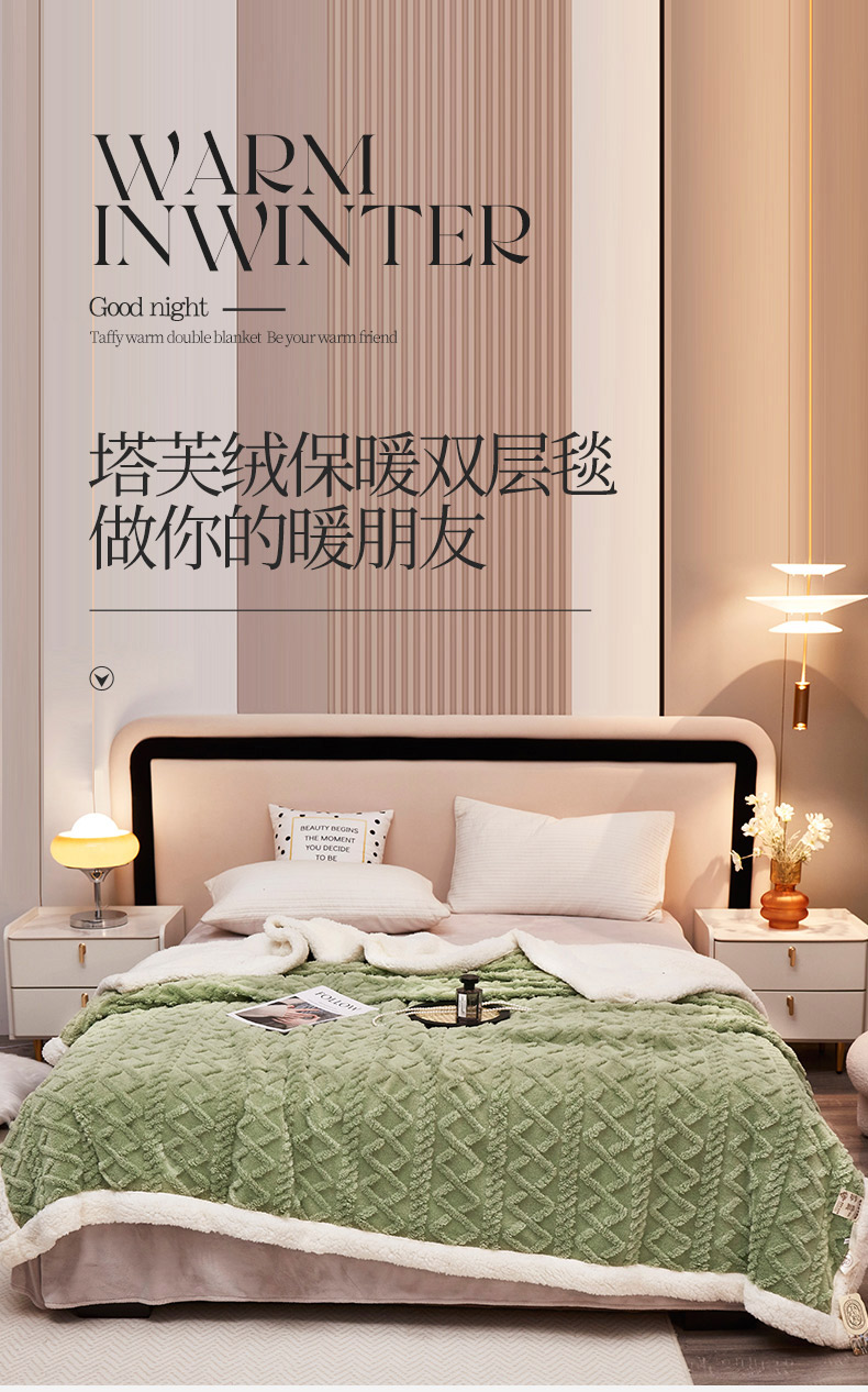 商品名称:悦织湾家纺 2025加厚保暖舒棉绒羊羔绒毛毯双面双层宽包边塔芙绒毯子休闲沙发盖毯小被子跨境专供外贸出口可定制 塔芙绒-豆沙紫