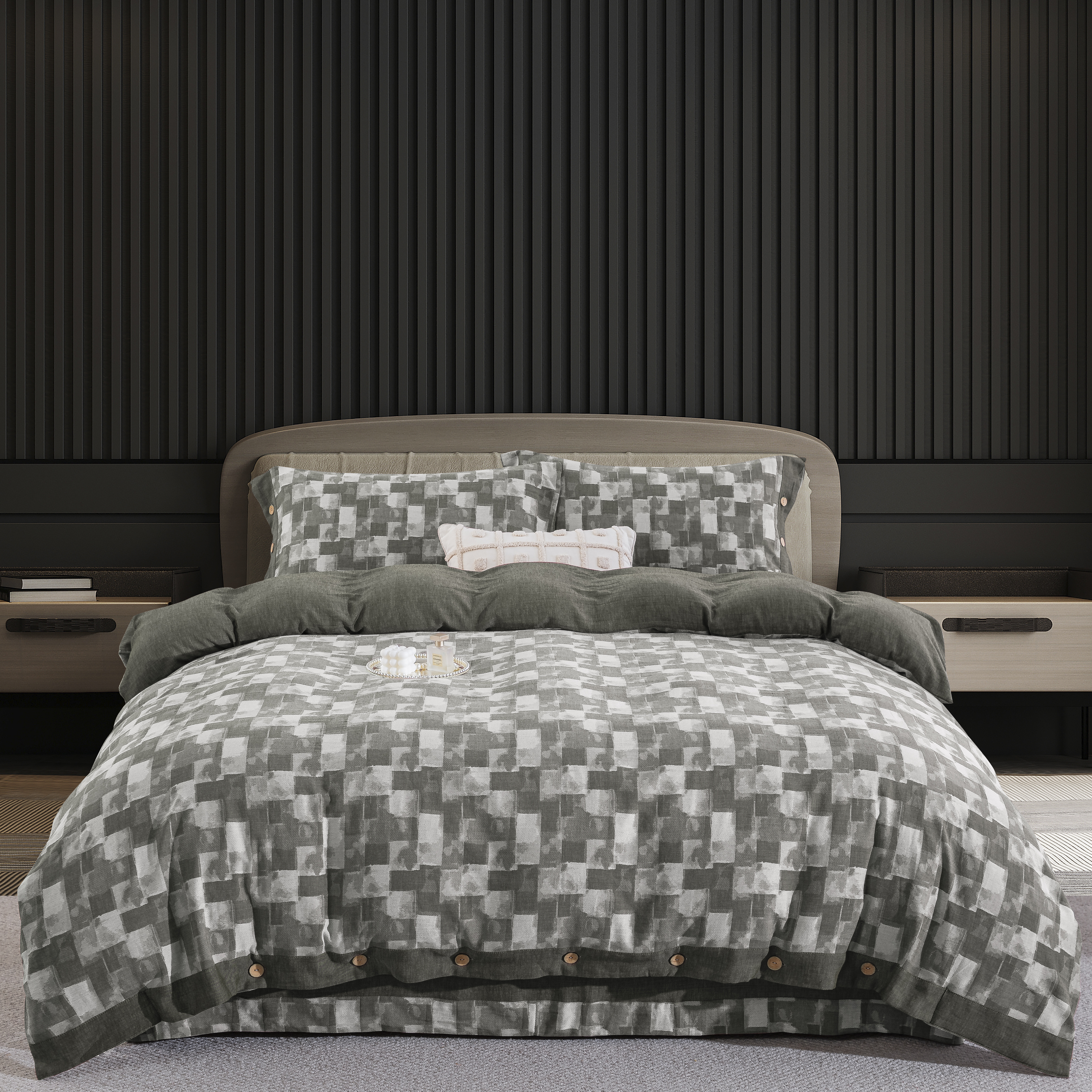 鲁爱家纺供货 2025新款全棉色织提花四件套 都市万象-绿