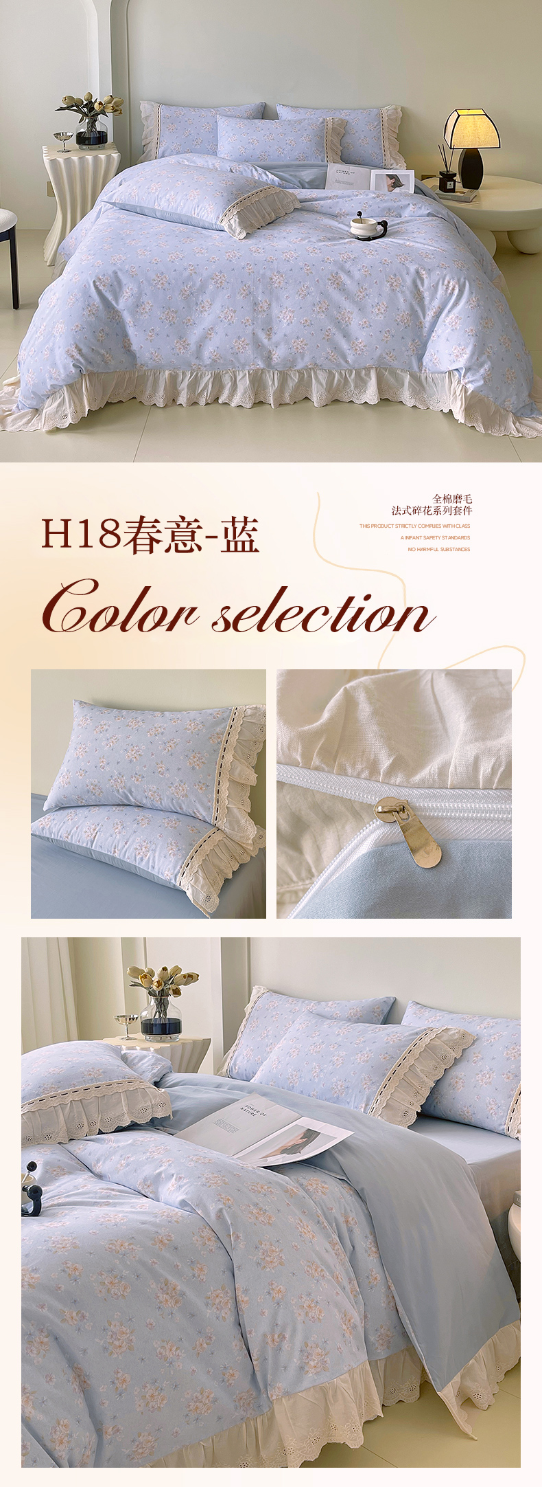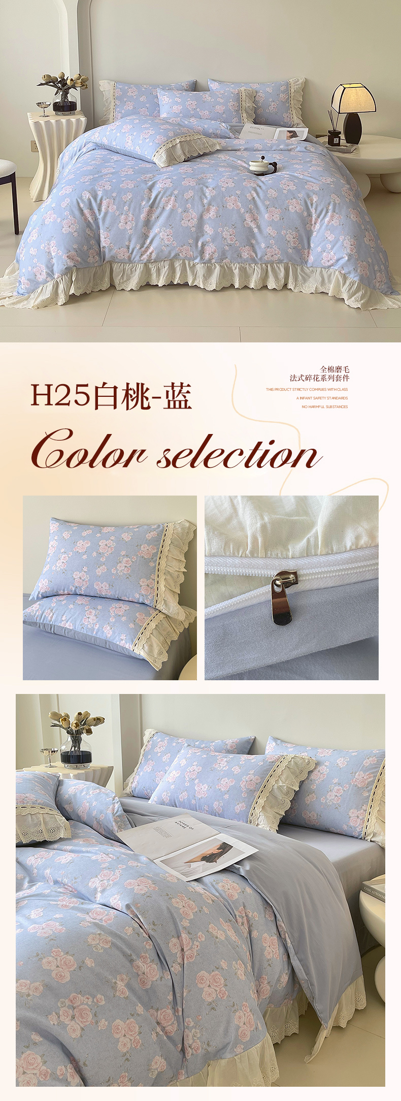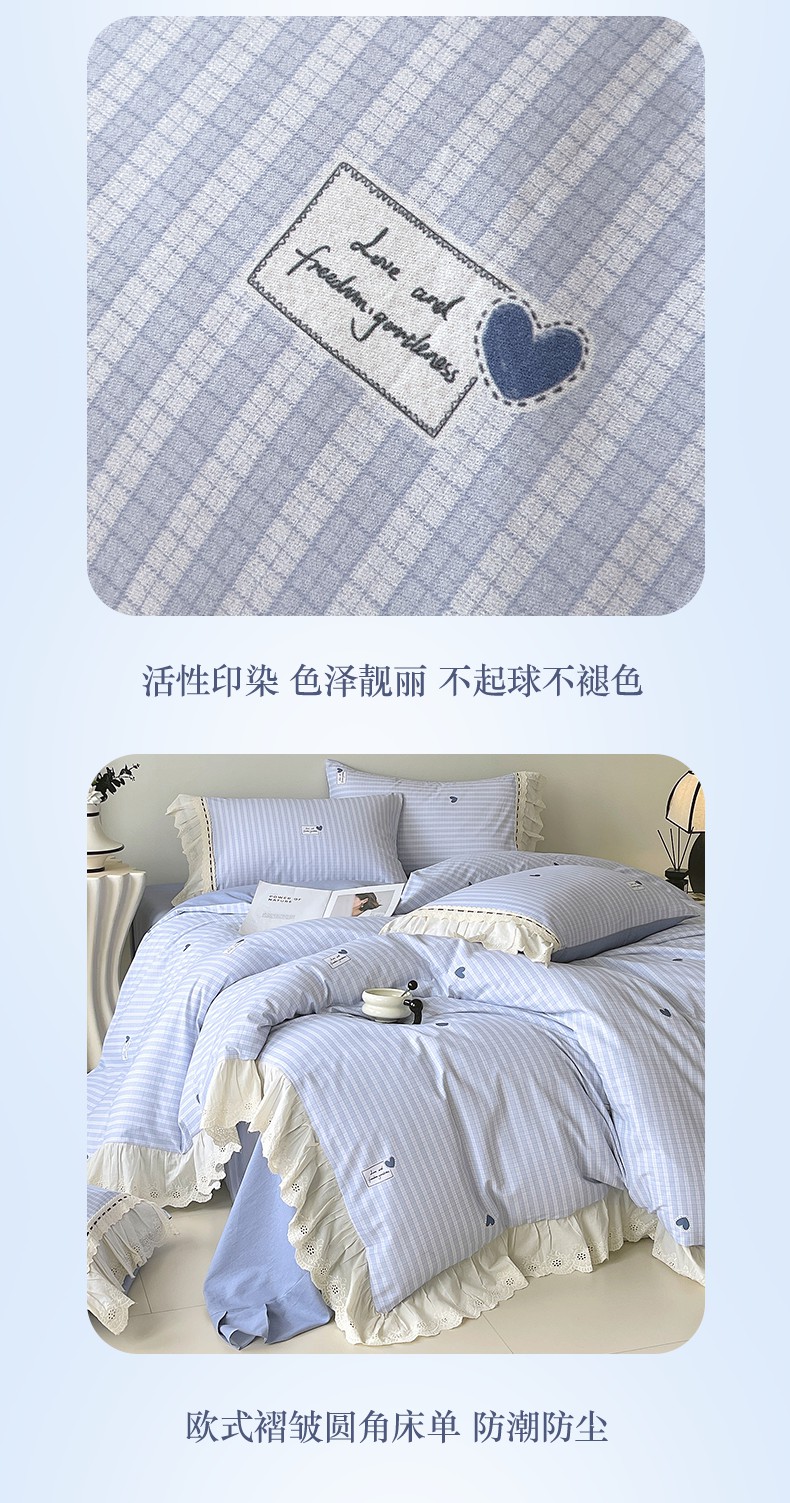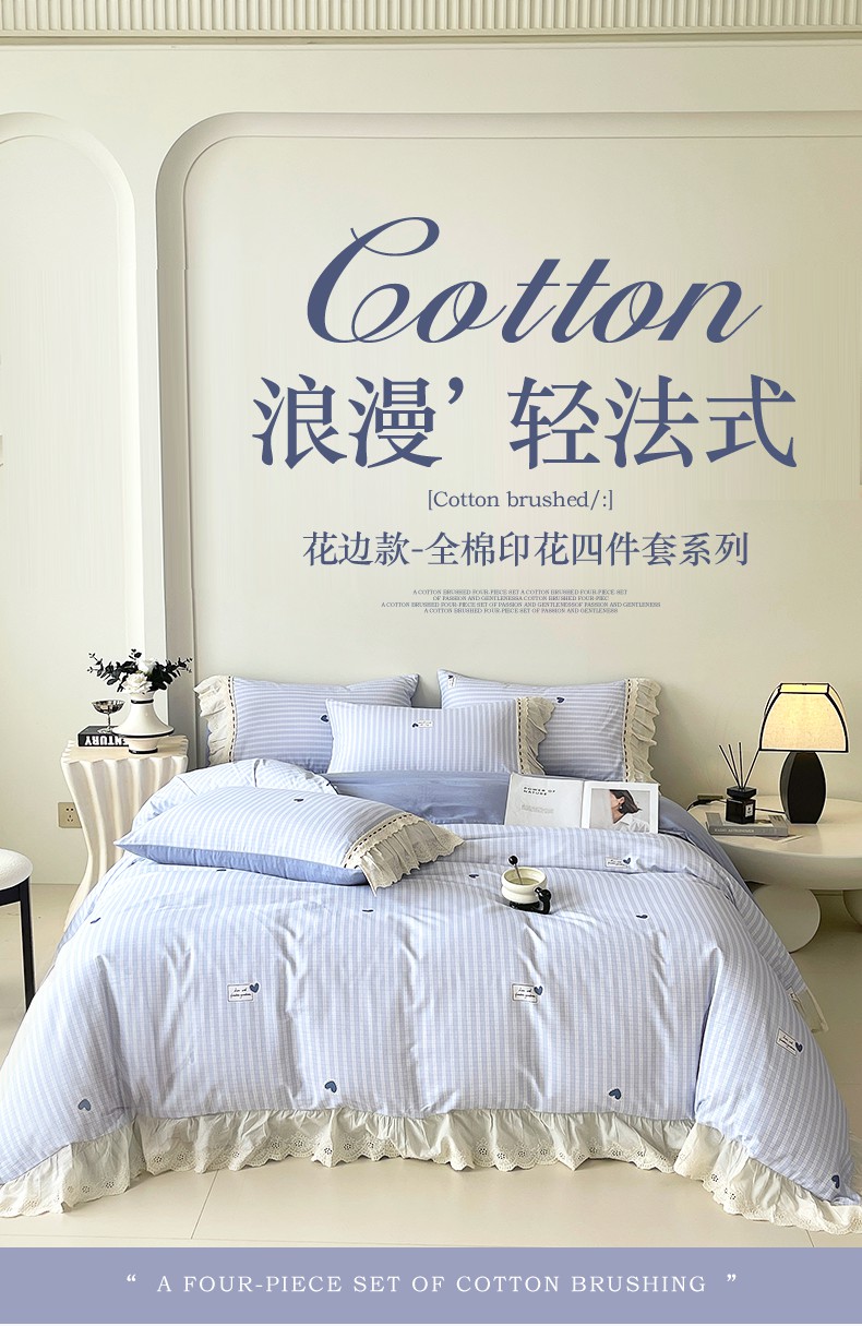 梧桐树 2025新款全棉印花四件套系列-花边款 H08露斯-蓝