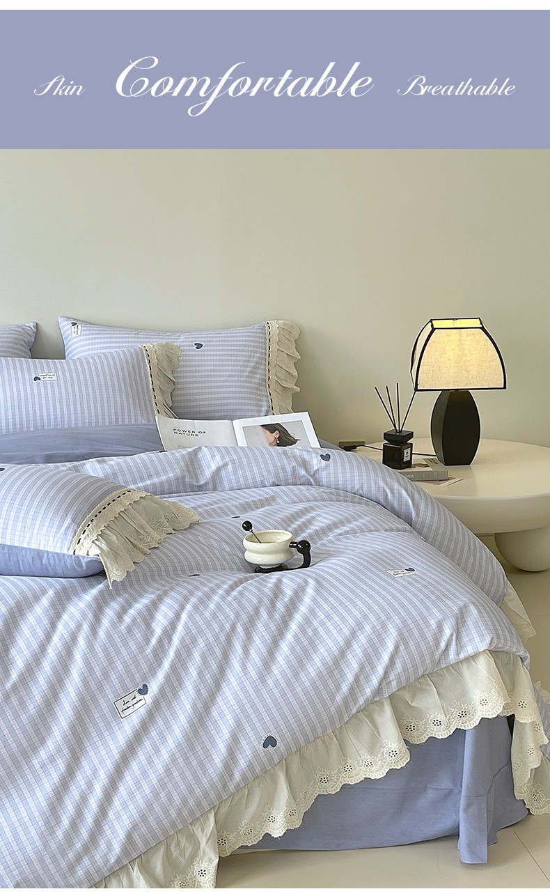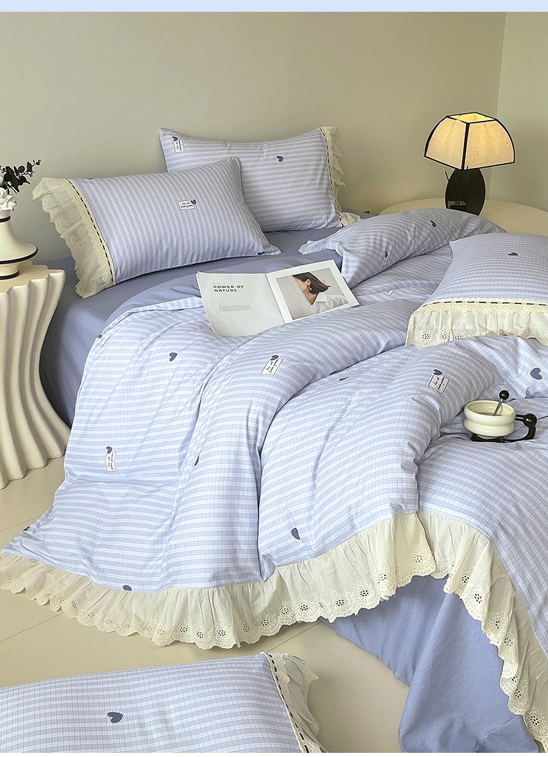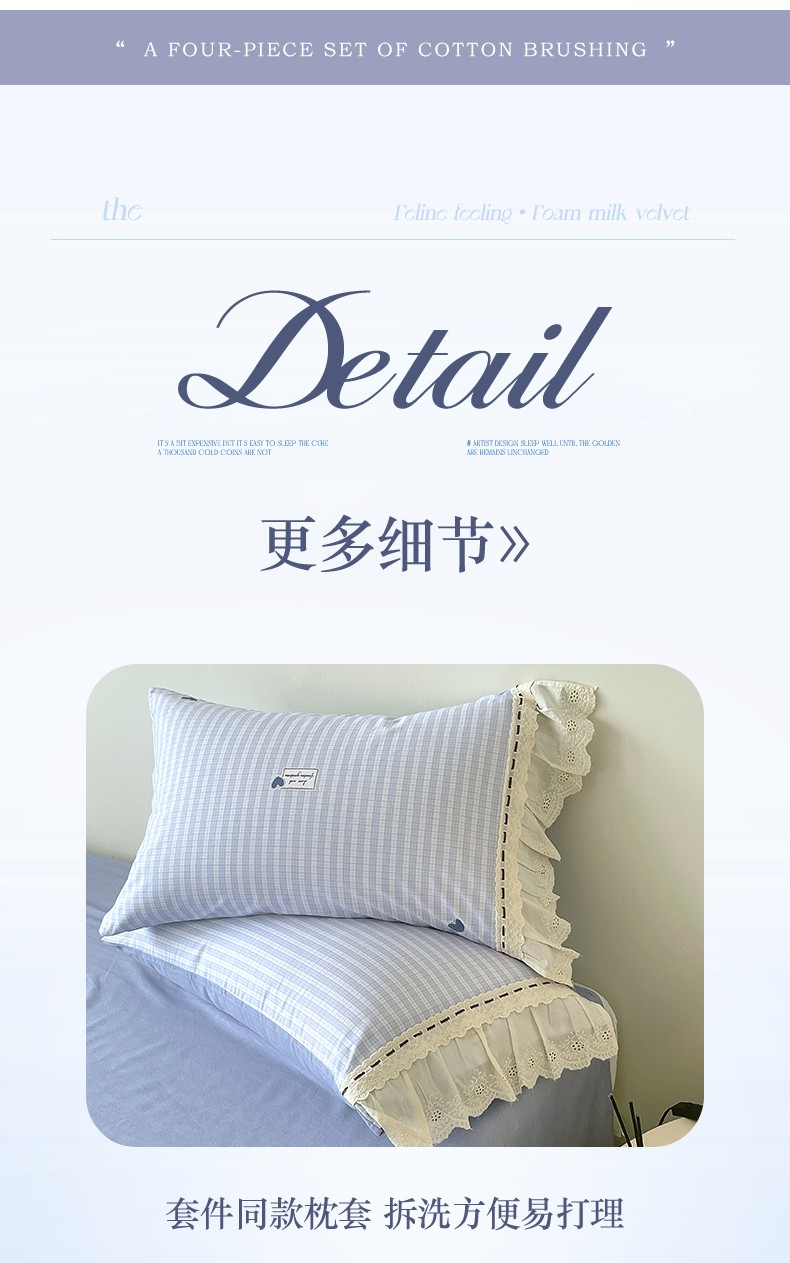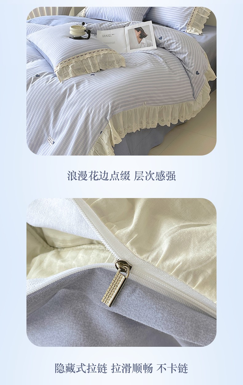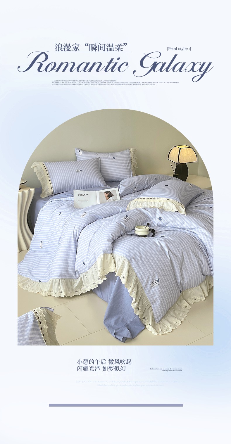 梧桐树 2025新款全棉印花四件套系列-花边款 H08露斯-蓝