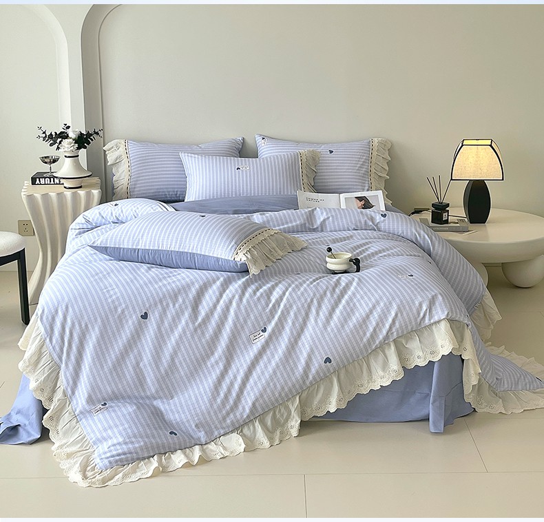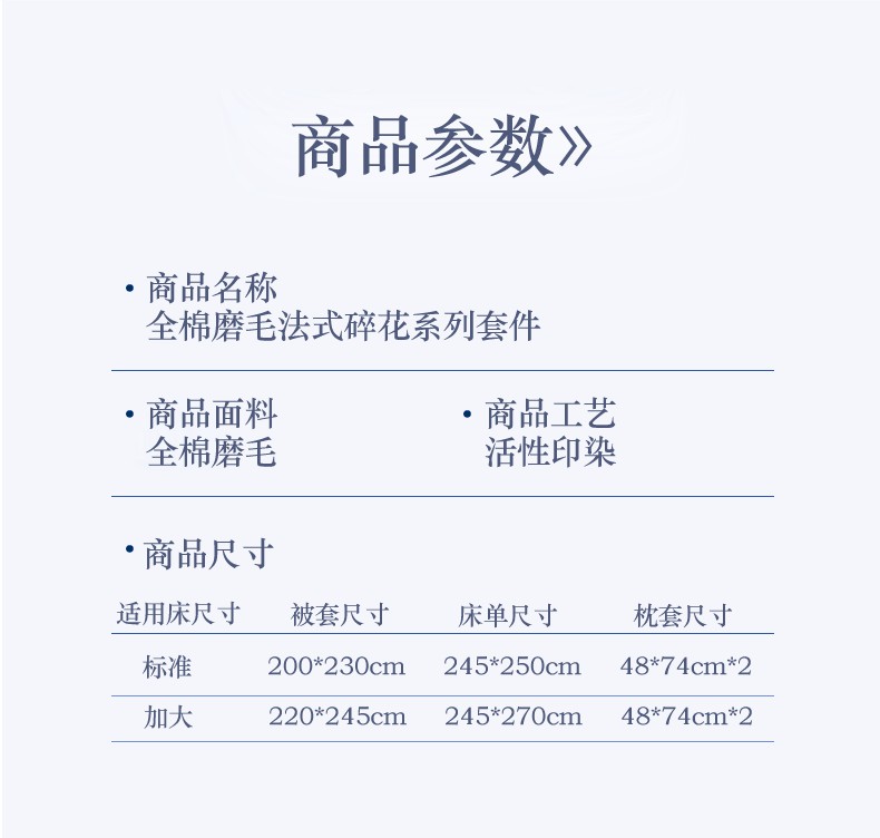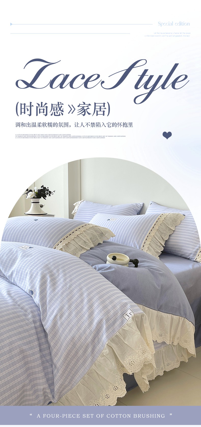 商品名称:梧桐树 2025新款全棉印花四件套系列-花边款 H08露斯-蓝