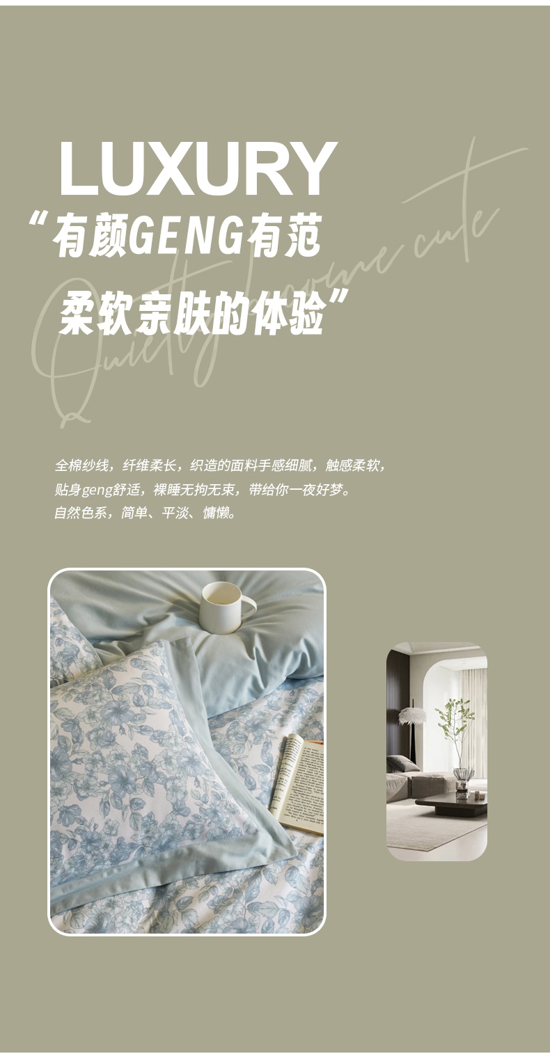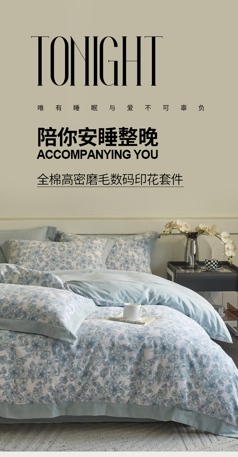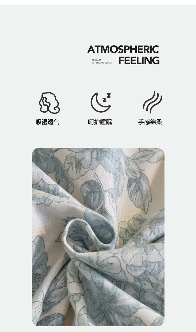 当前位置: 91家纺网 > 商品网购 > 床品套件 > 四件套 > 全棉普通四件套 > 慕晨 2025新款全棉纯棉磨毛轻奢数码印花直播热款四件套 轻轻丝语-蓝