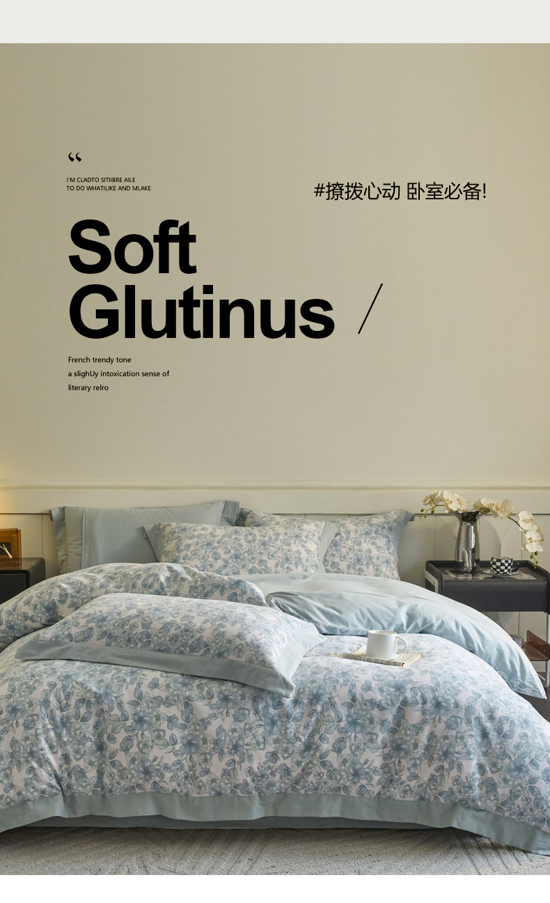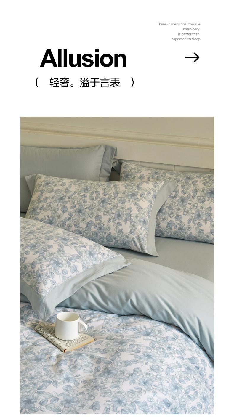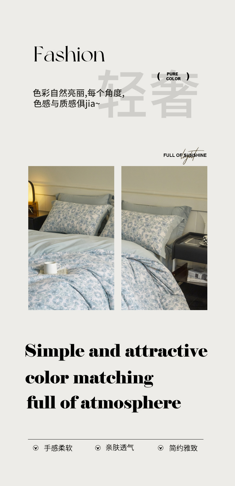 当前位置: 91家纺网 > 商品网购 > 床品套件 > 四件套 > 全棉普通四件套 > 慕晨 2025新款全棉纯棉磨毛轻奢数码印花直播热款四件套 轻轻丝语-蓝