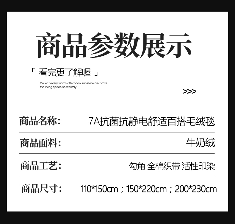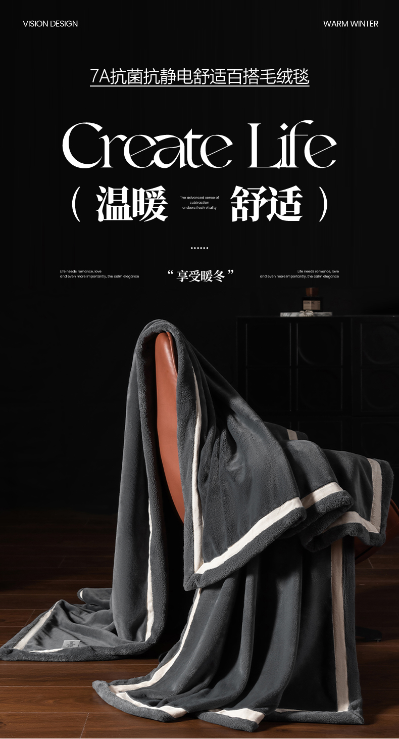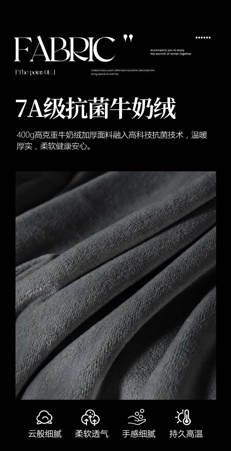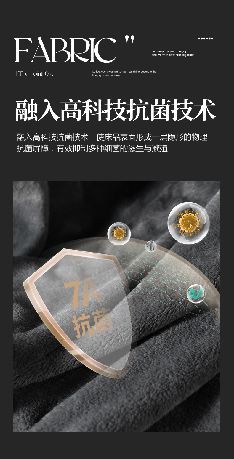 商品名称:网客家纺 2025新款7A抗菌抗静电舒适百搭毛绒毯 7A抗菌毯-金典灰