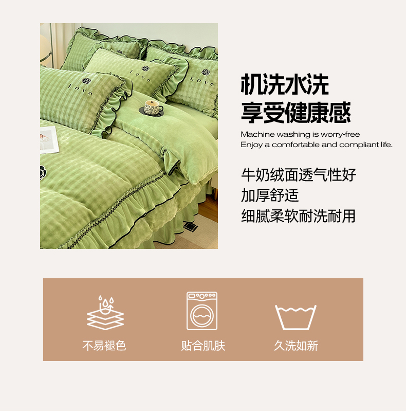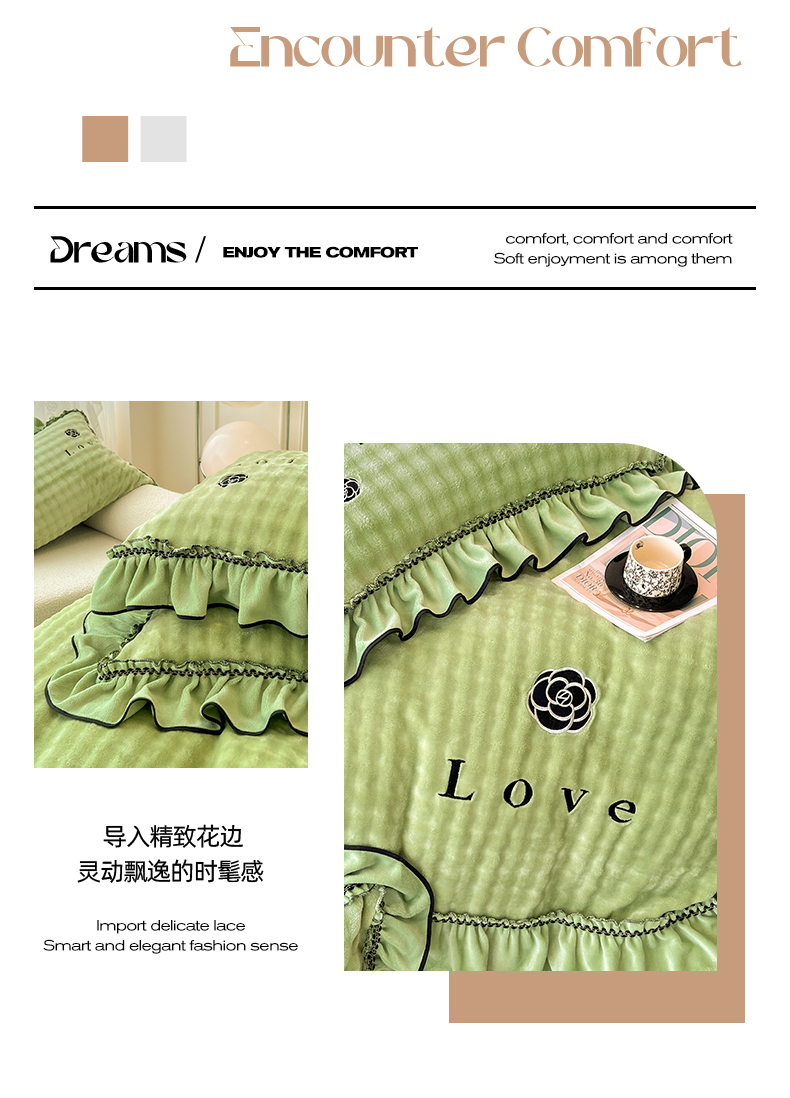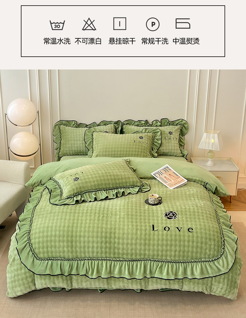 (总)言熙居 2024直播爆款新款牛奶绒法兰绒蕾丝花边黑纱四件套,蕾丝-小清新黄,蕾丝-小清新桔,蕾丝-小清新蓝,蕾丝-小清新绿,蕾丝-小清新抹茶绿,蕾丝-小清新玉,蕾丝-小清新紫