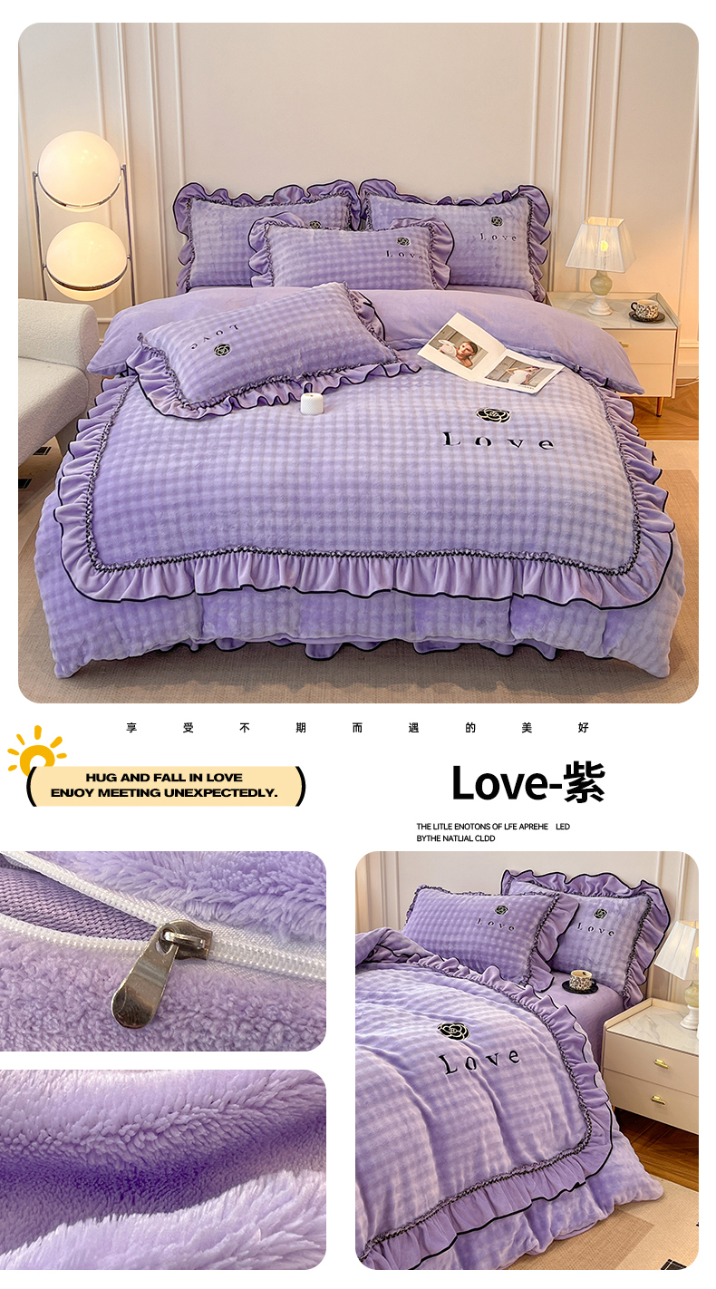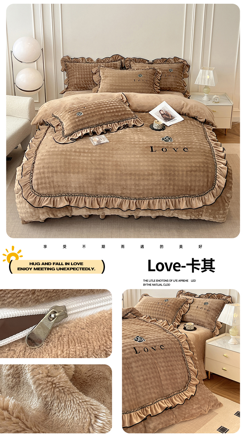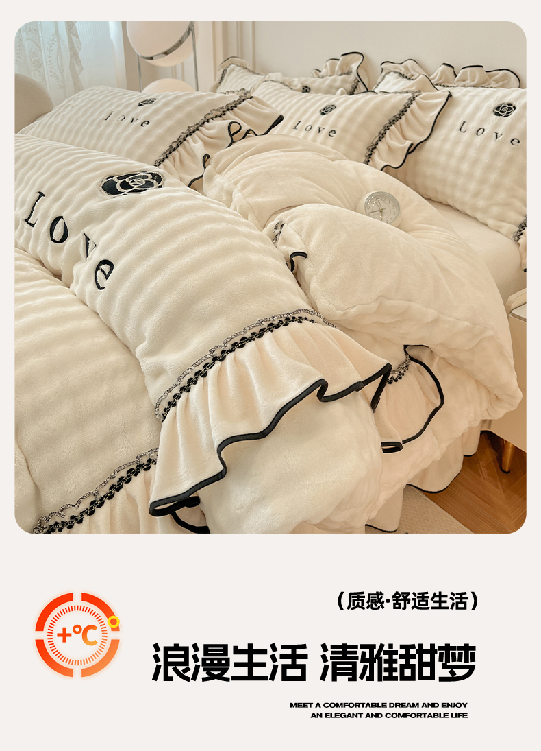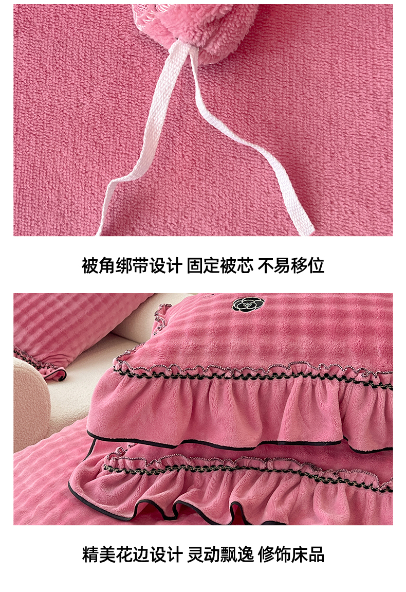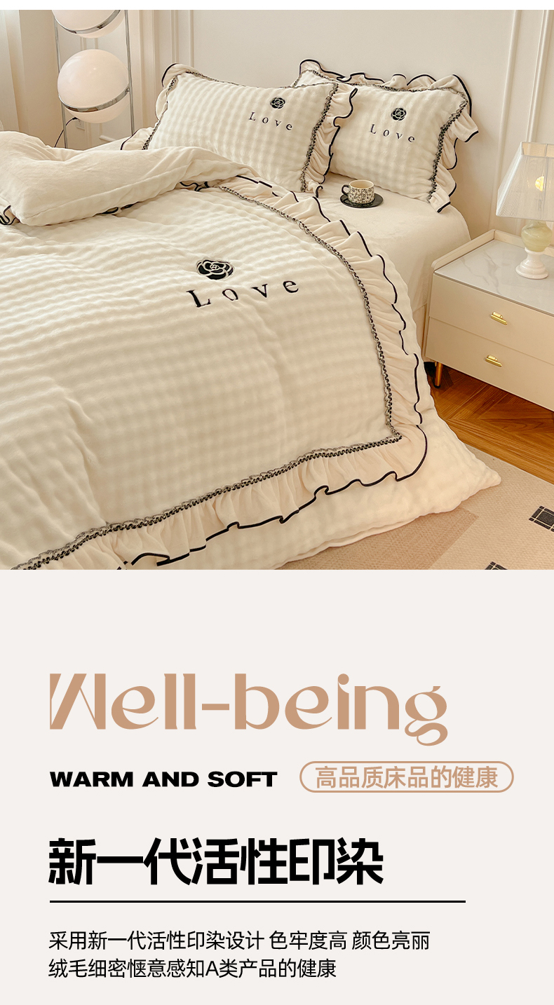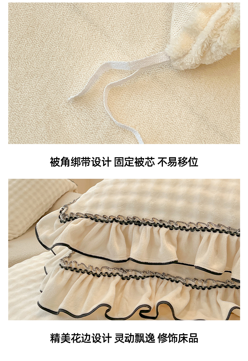 (总)言熙居家纺 2025新款A类兔毛绒韩版卡通花边四件套,蝴蝶结,幻蝶,墨枝,休闲一刻,映春,花眠
