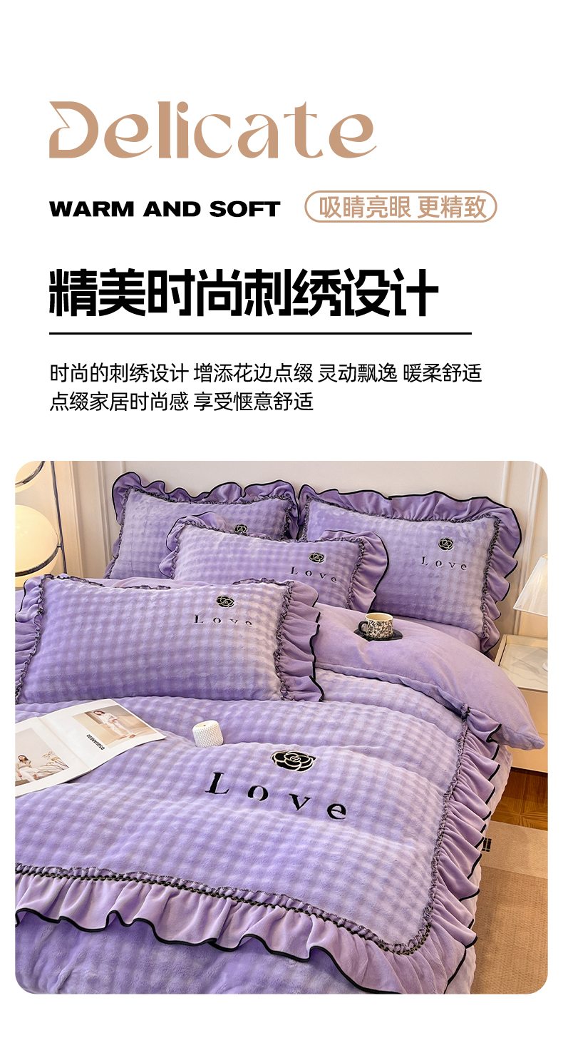 (总)言熙居家纺 2025新款牛奶绒绣花四件套