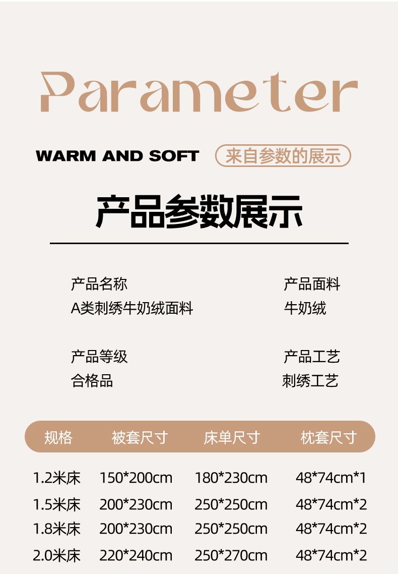 商品名称:(总)言熙居家纺 2025新款牛奶绒绣花四件套