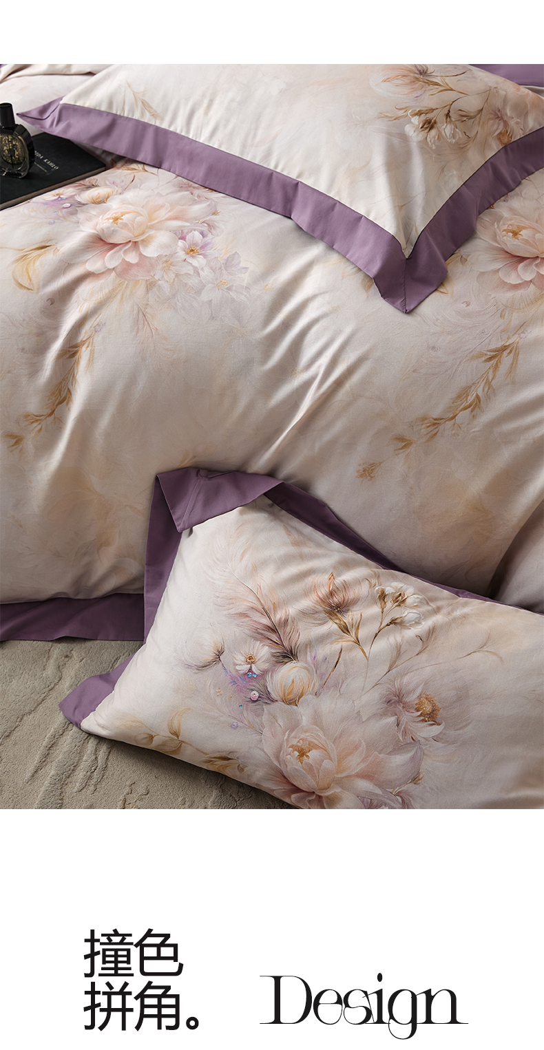 涵宸家纺 2025新款50S全棉磨毛拼角款四件套【更多花型 联系商家电话:17798859966 微信同号,网站:www.hanchenjf.com】 漾花(粉)