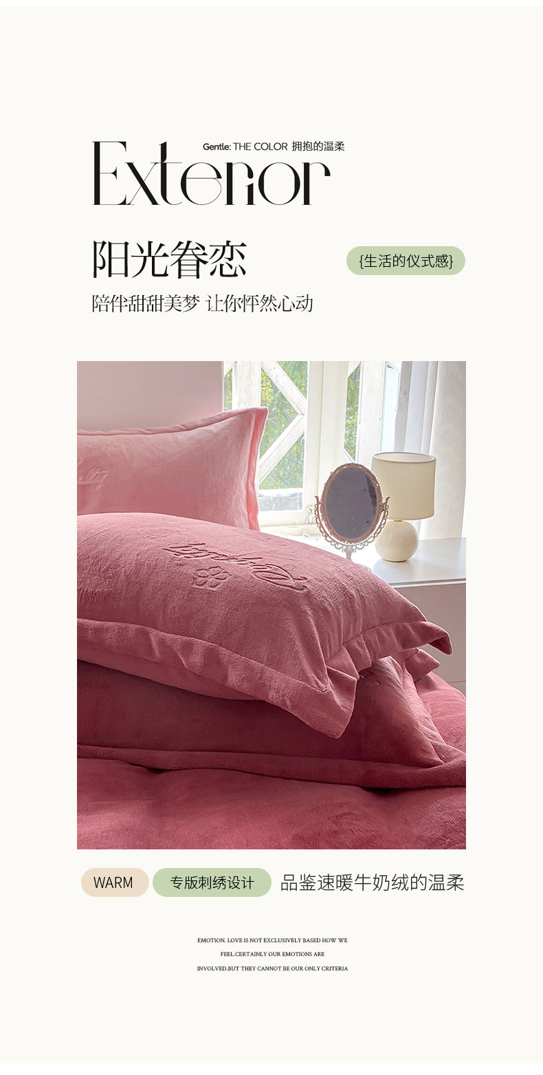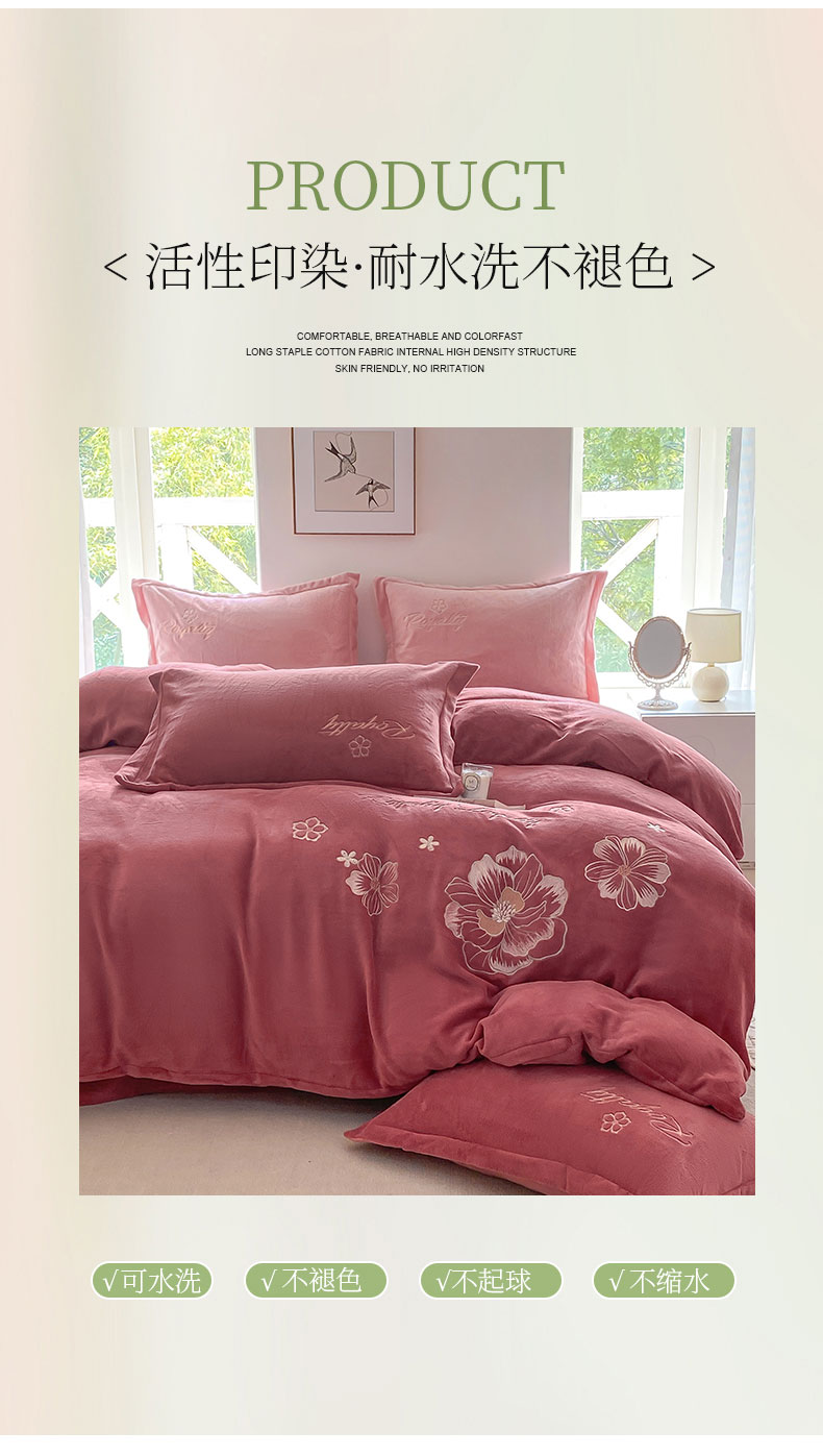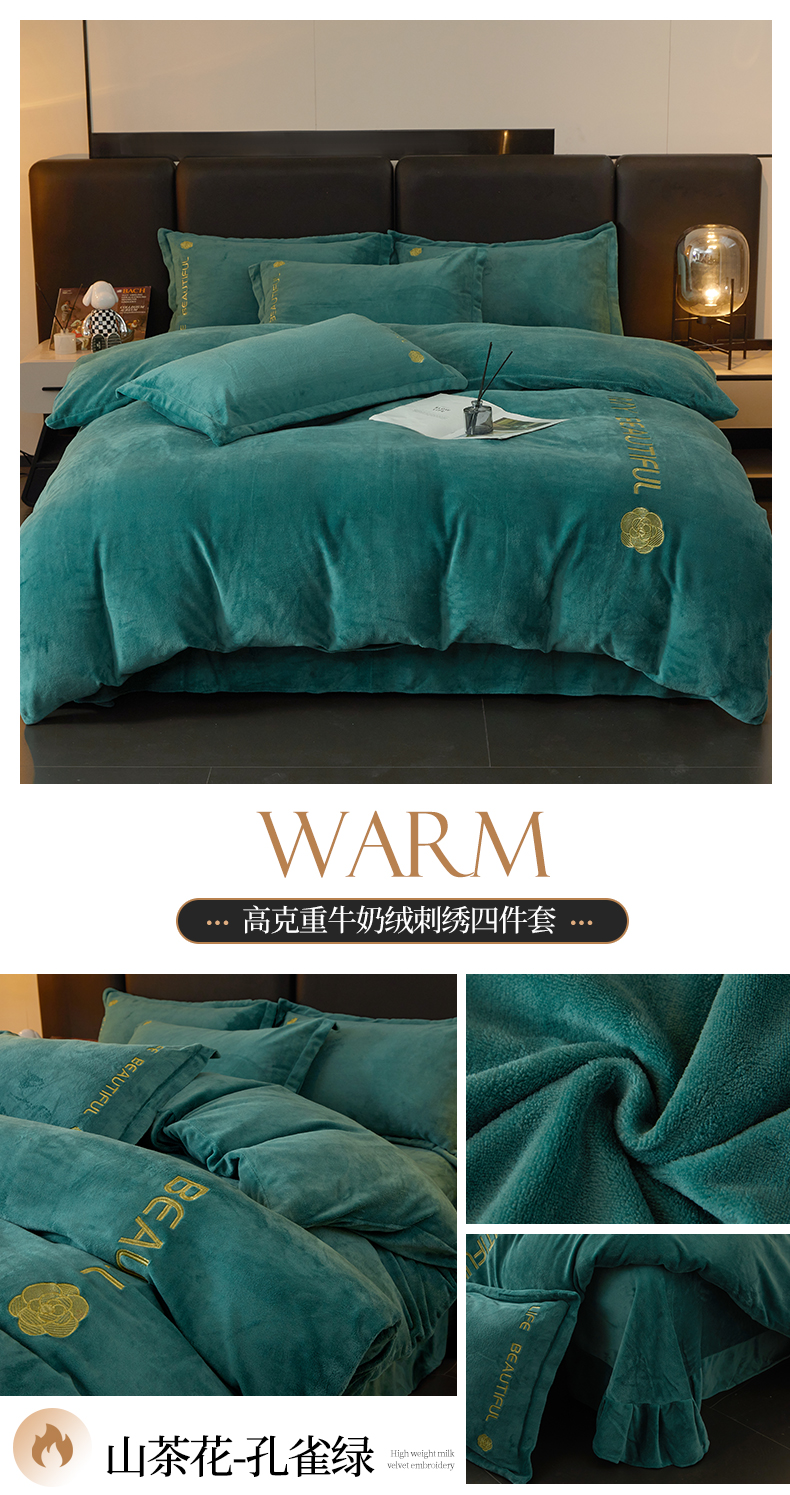商品名称:悦织湾家纺 2025新款绣花200克重牛奶绒四件套刺绣3.5万针7斤重高密加厚保暖跨境专供外贸出口电商热销款 花语-豆沙
