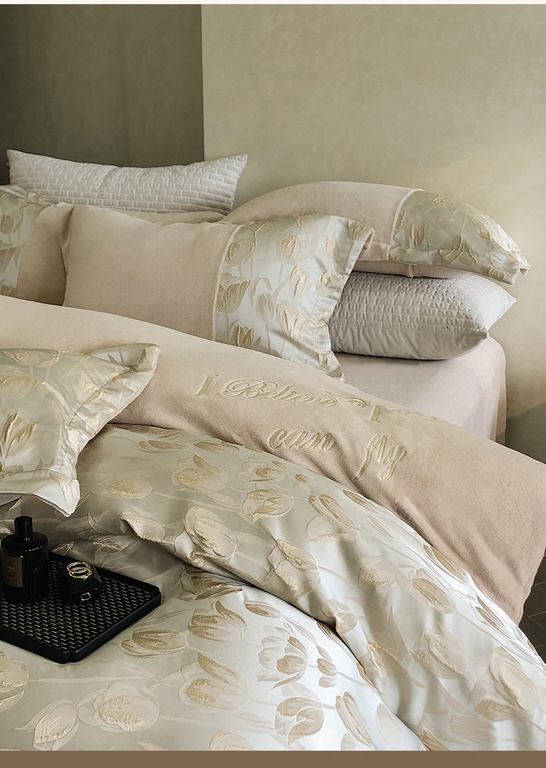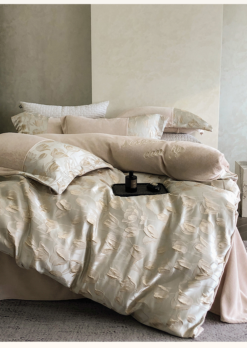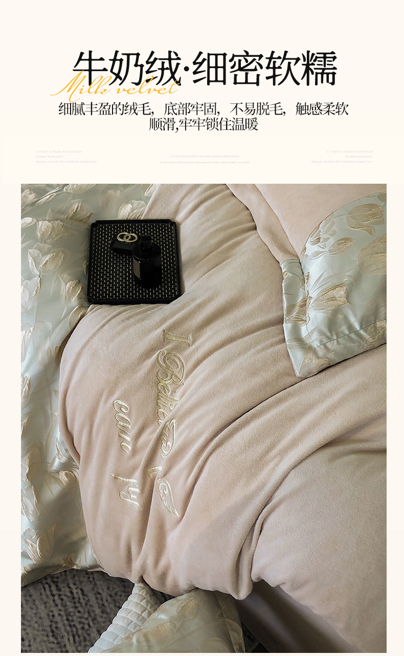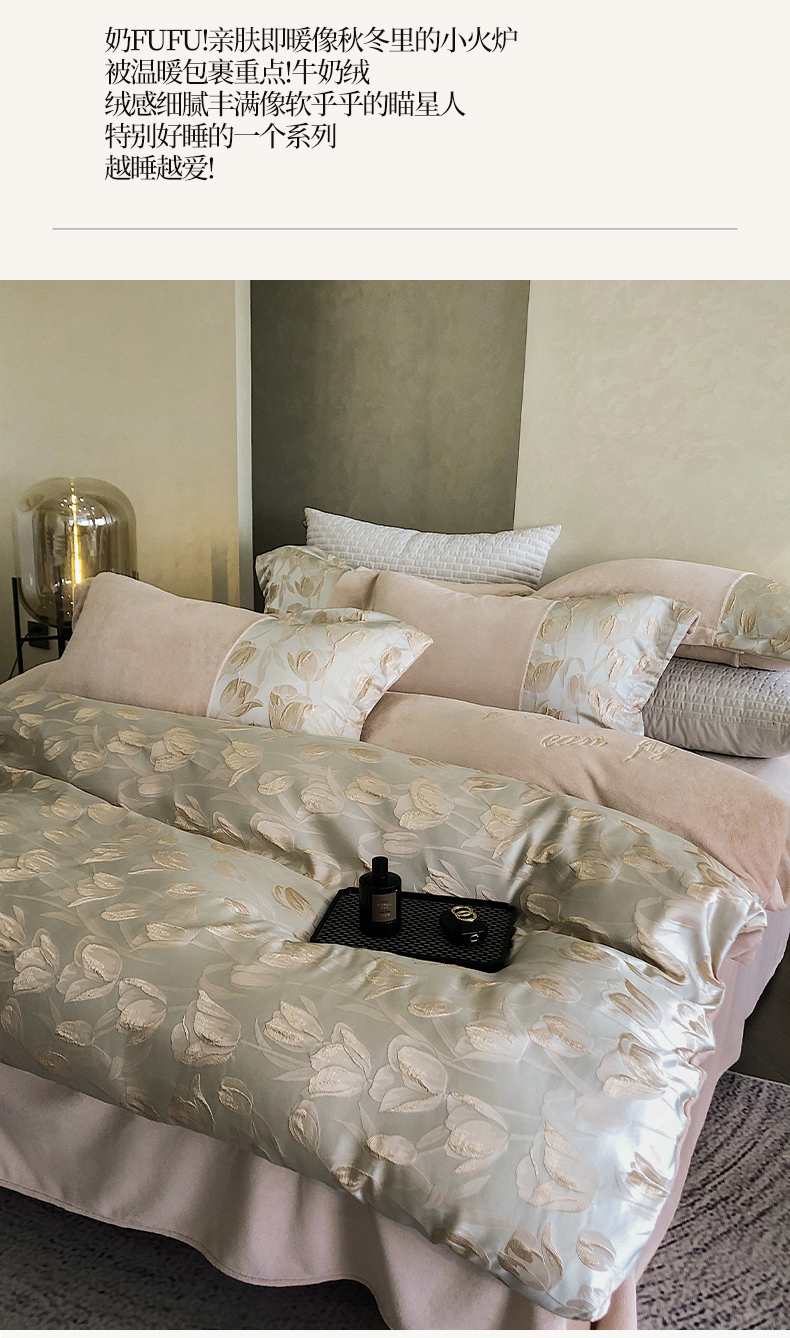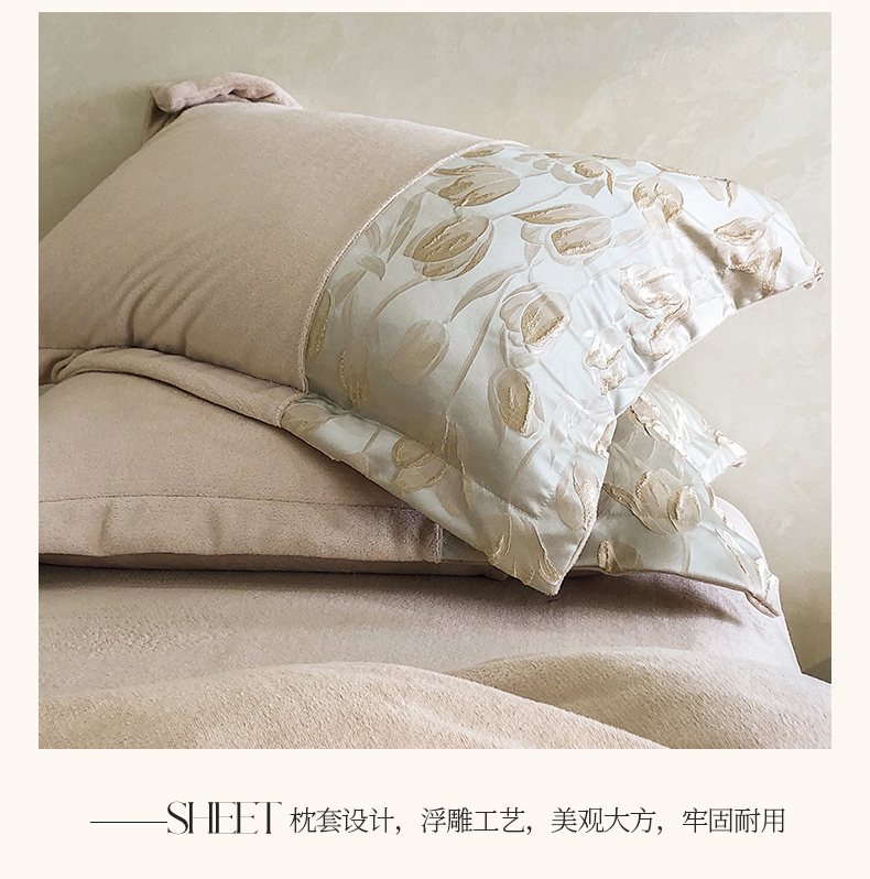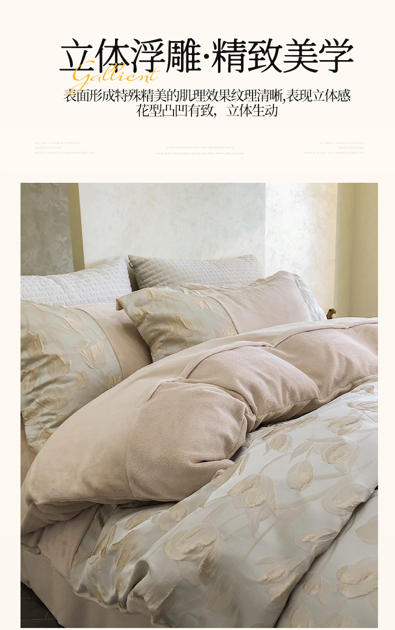 商品名称:换种生活 2025新款A类浮雕牛奶绒刺绣四件套 郁金香-奶咖