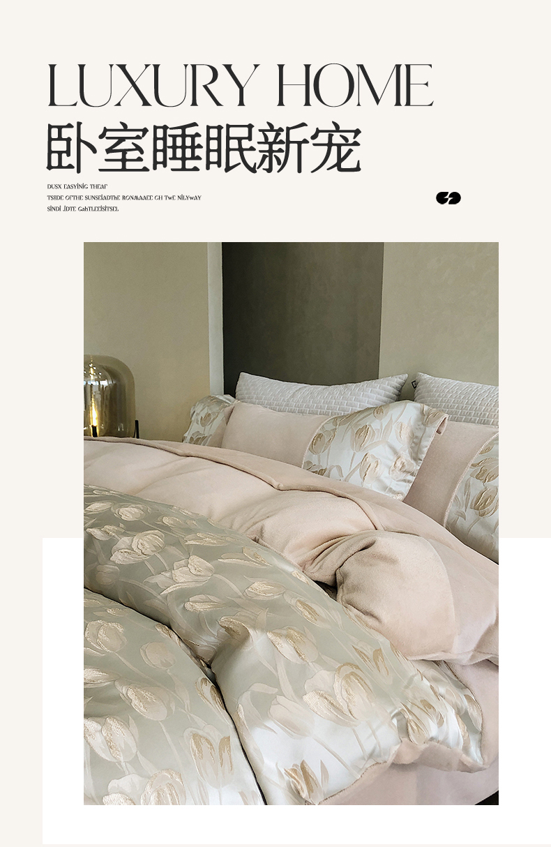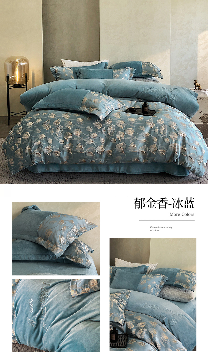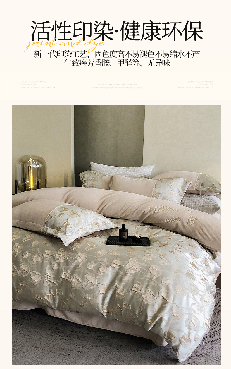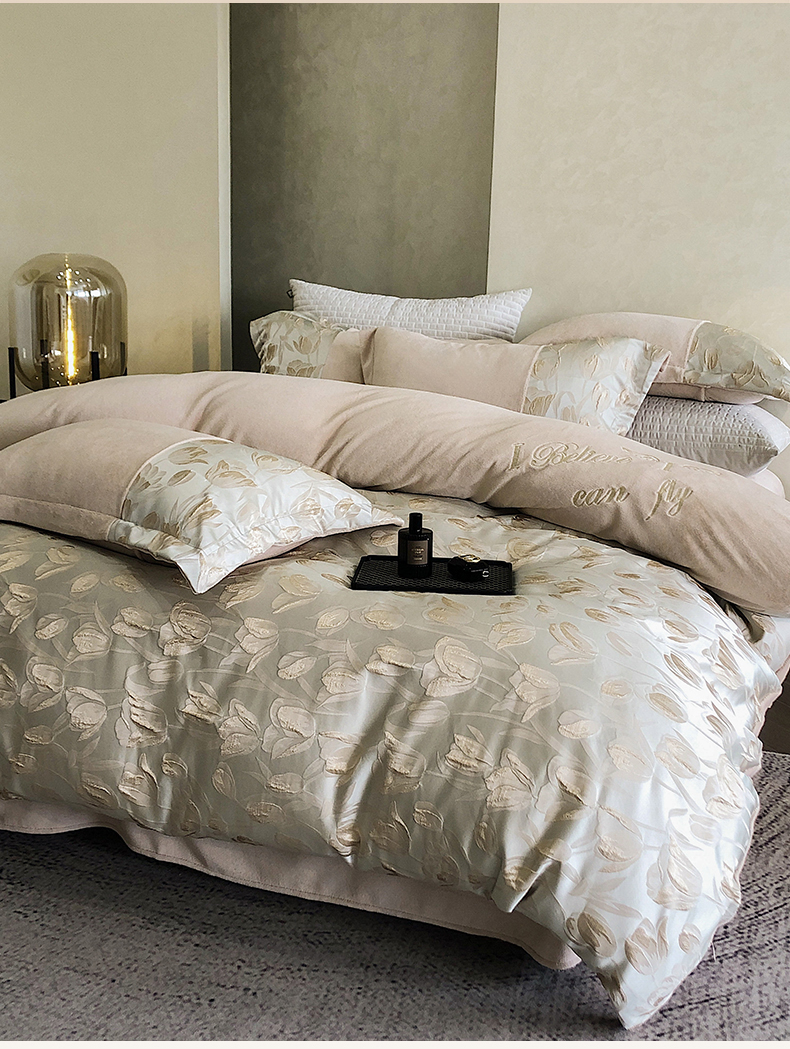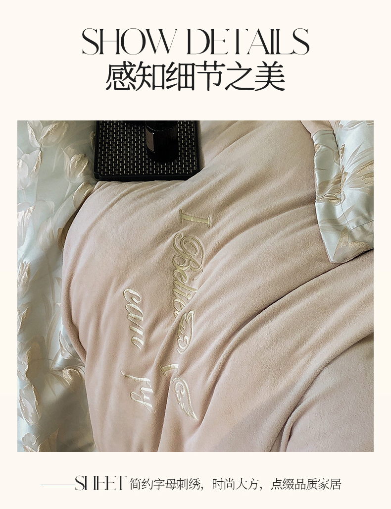 商品名称:换种生活 2025新款A类浮雕牛奶绒刺绣四件套 郁金香-奶咖