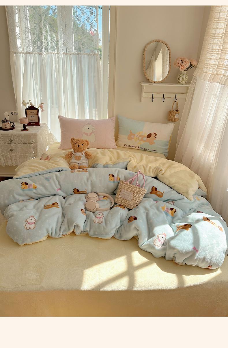 美乐迪家纺 2025秋冬新款牛奶绒四件套 墨点小狗