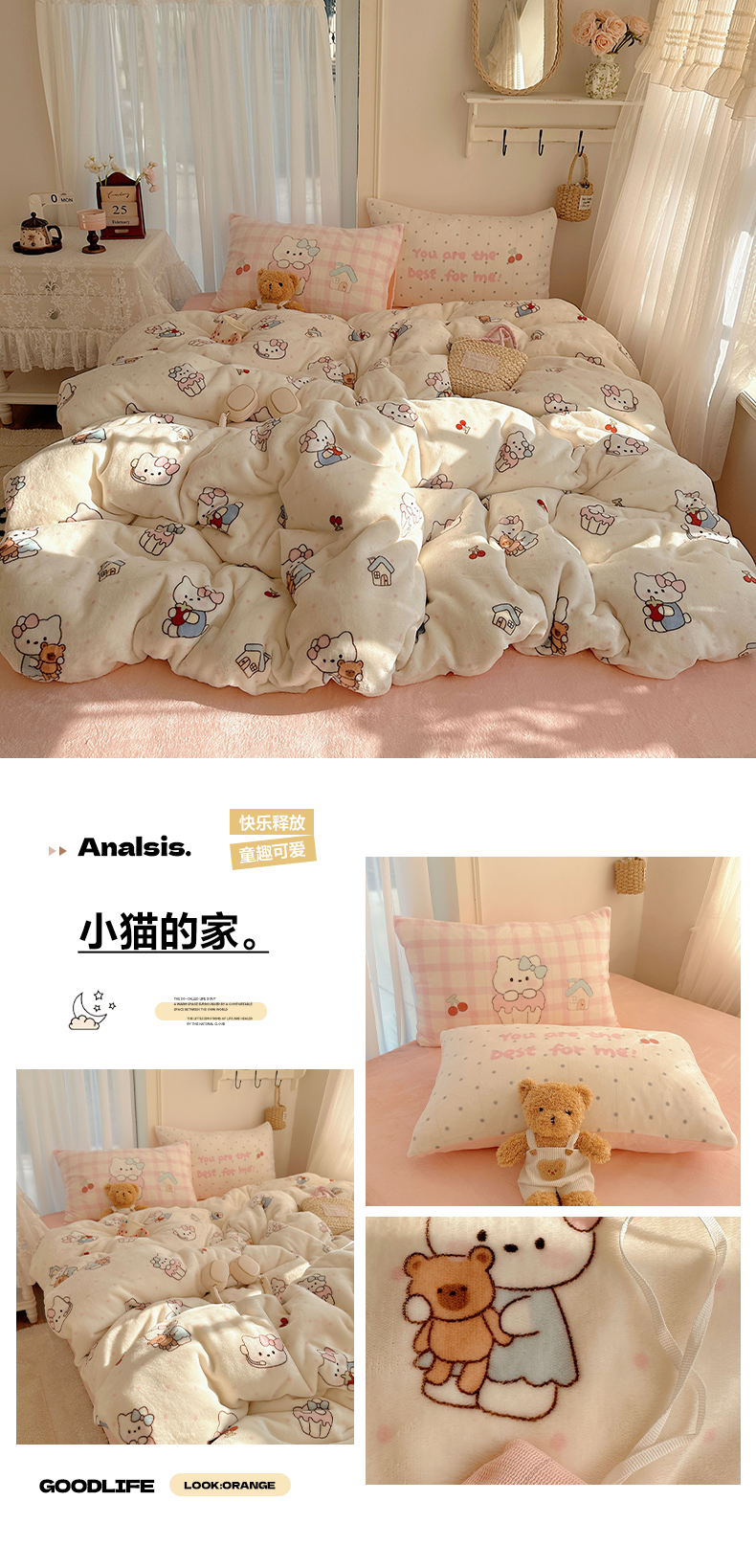 (总)美乐迪家纺 2025新款高品质大版牛奶绒四件套,波点小猫,波点小熊,大脸猫,费尔岛猫猫,费尔岛小熊,星星男孩