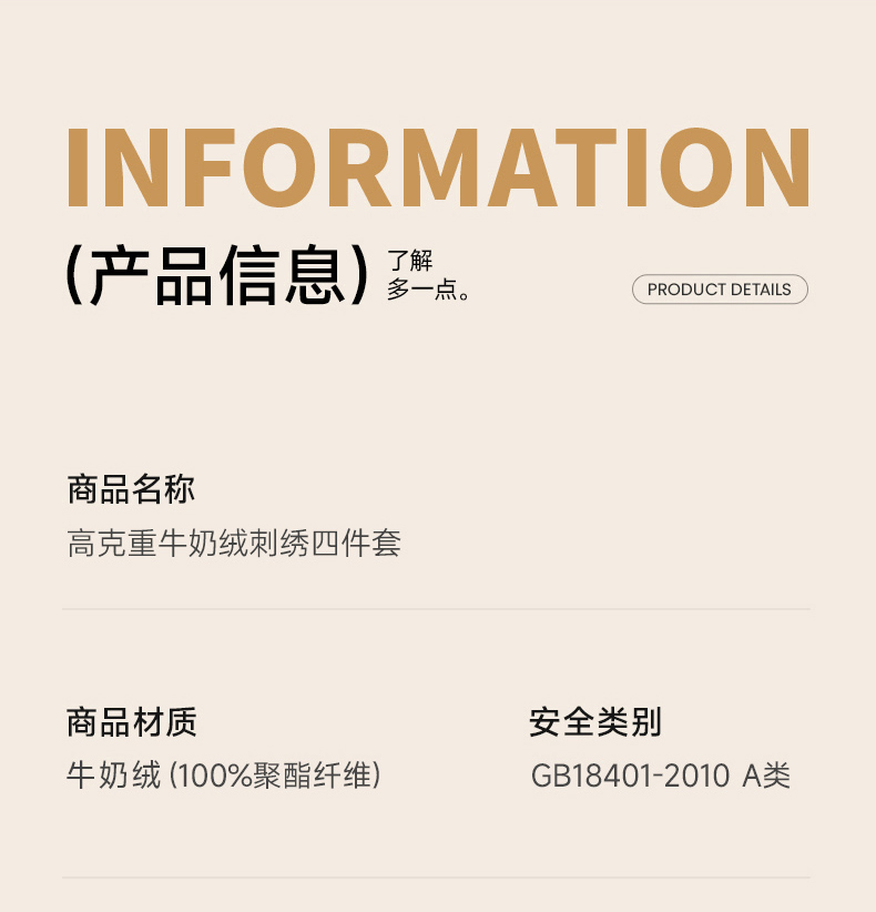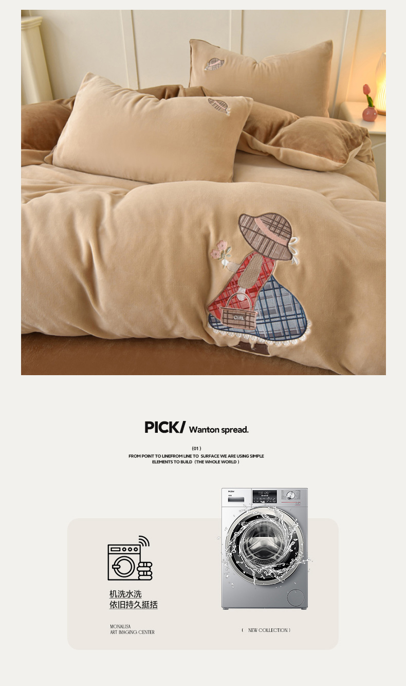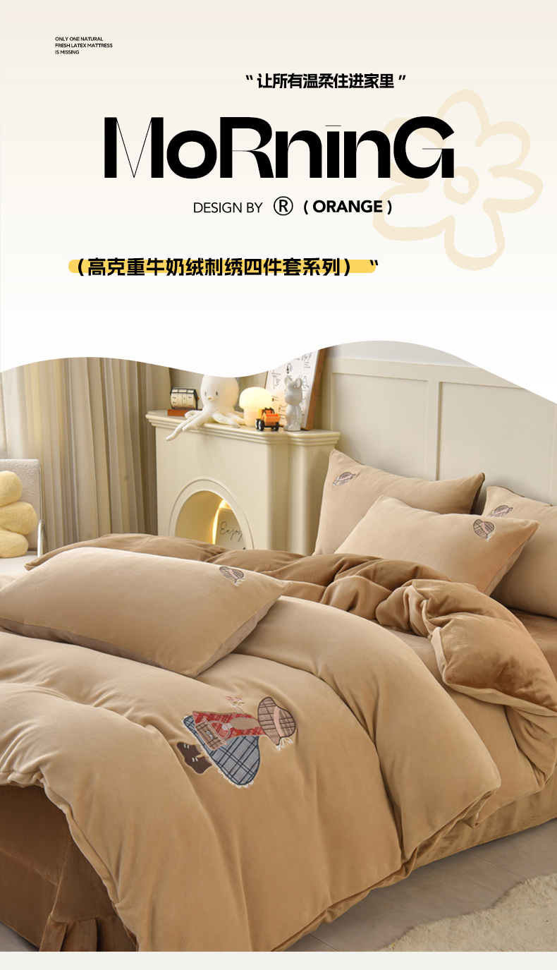 商品名称:牵依 2025新款高克重绣花牛奶绒四件套 苏姑娘-奶咖