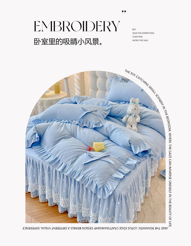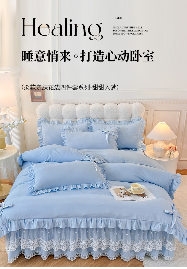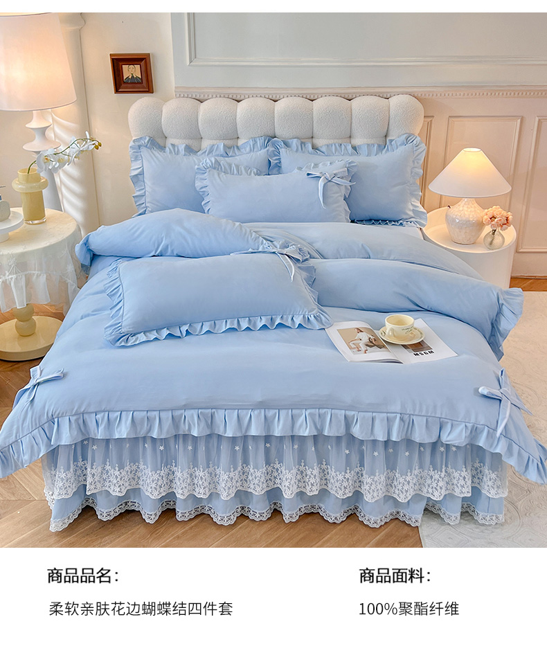 (总)后庭寝室 2025新款亲肤舒适柔软亲肤花边蝴蝶结四件套-如愿