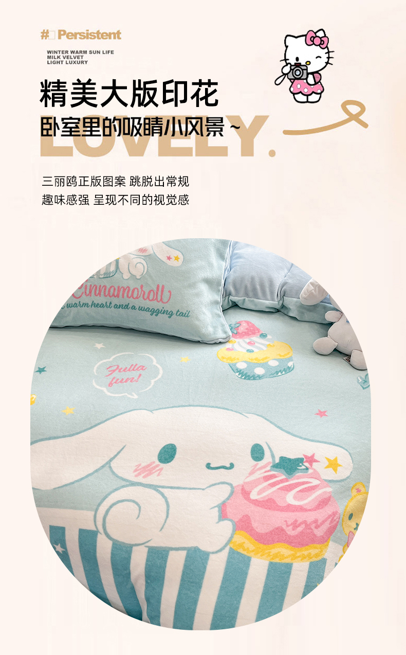 当前位置: 91家纺网 > 商品网购 > 床品套件 > 四件套 > 牛奶绒四件套 > 金爱家 2025新品正版三丽鸥授权大版卡通平网数码印花加厚高克重牛奶绒系列四件套 绒大版-蛋糕大耳狗