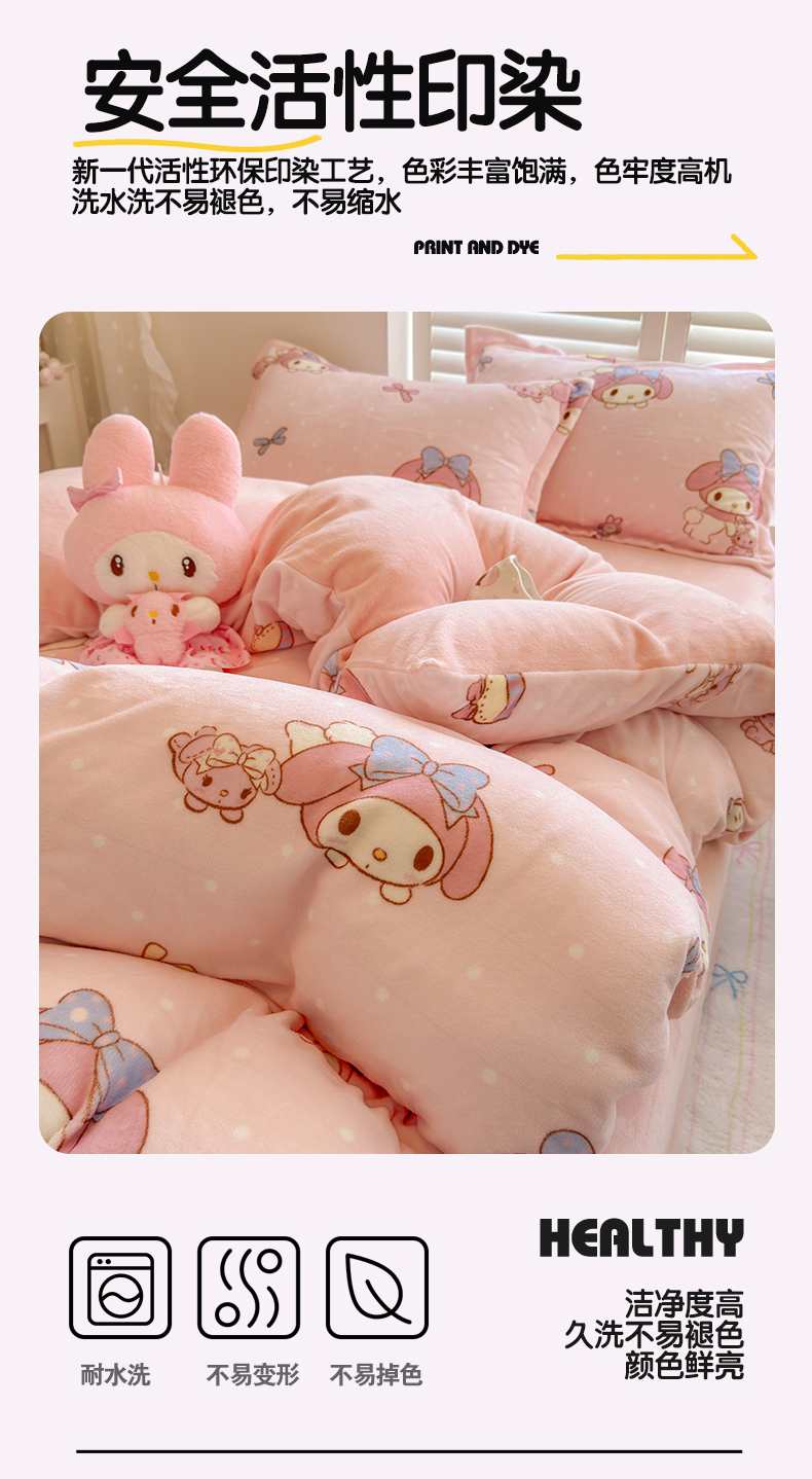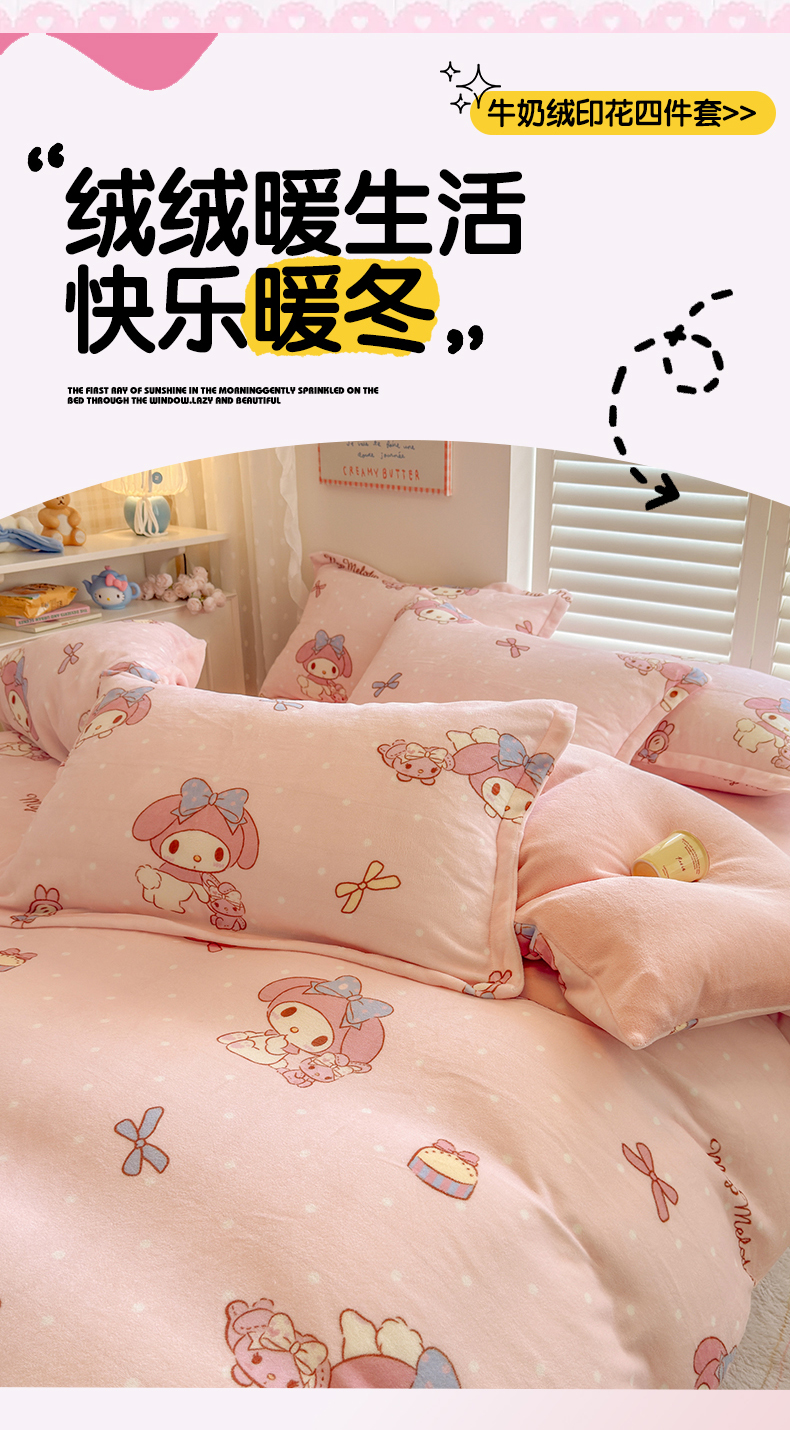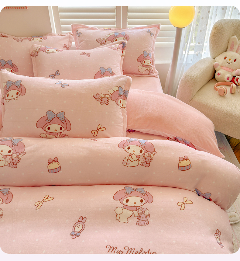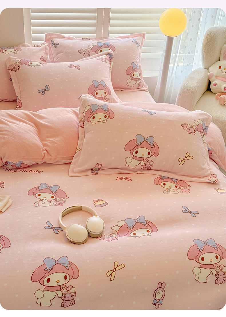 当前位置: 91家纺网 > 商品网购 > 床品套件 > 四件套 > 牛奶绒四件套 > 名兮家居 2025新款经典奥特曼-三丽鸥高克重牛奶绒四件套 点点美乐蒂