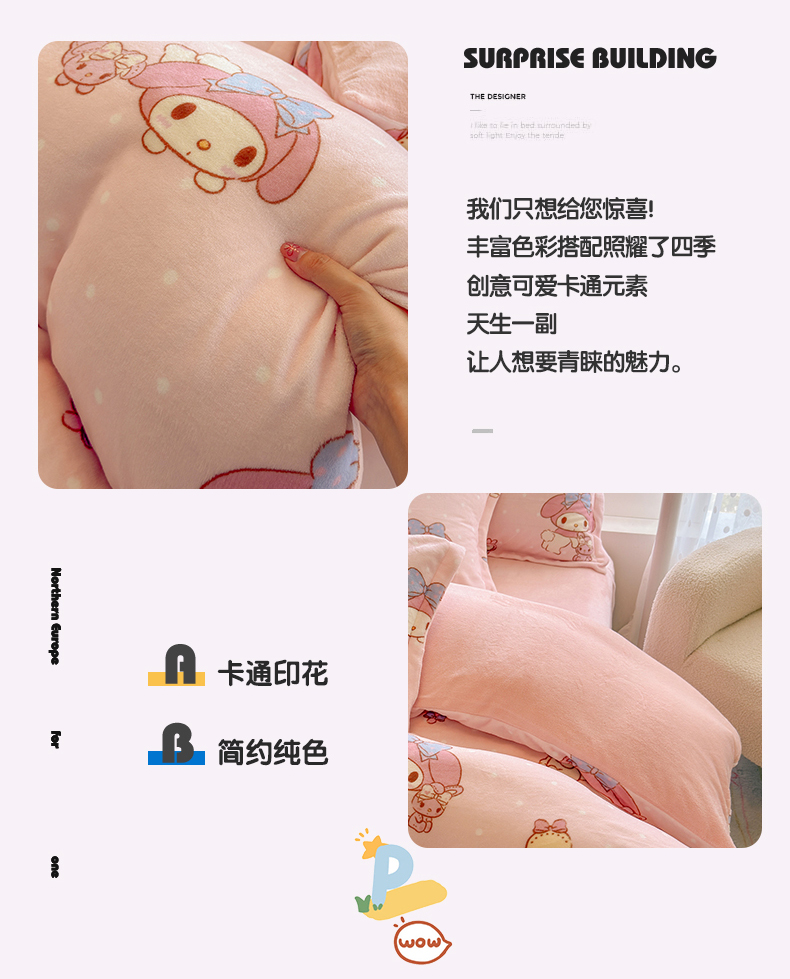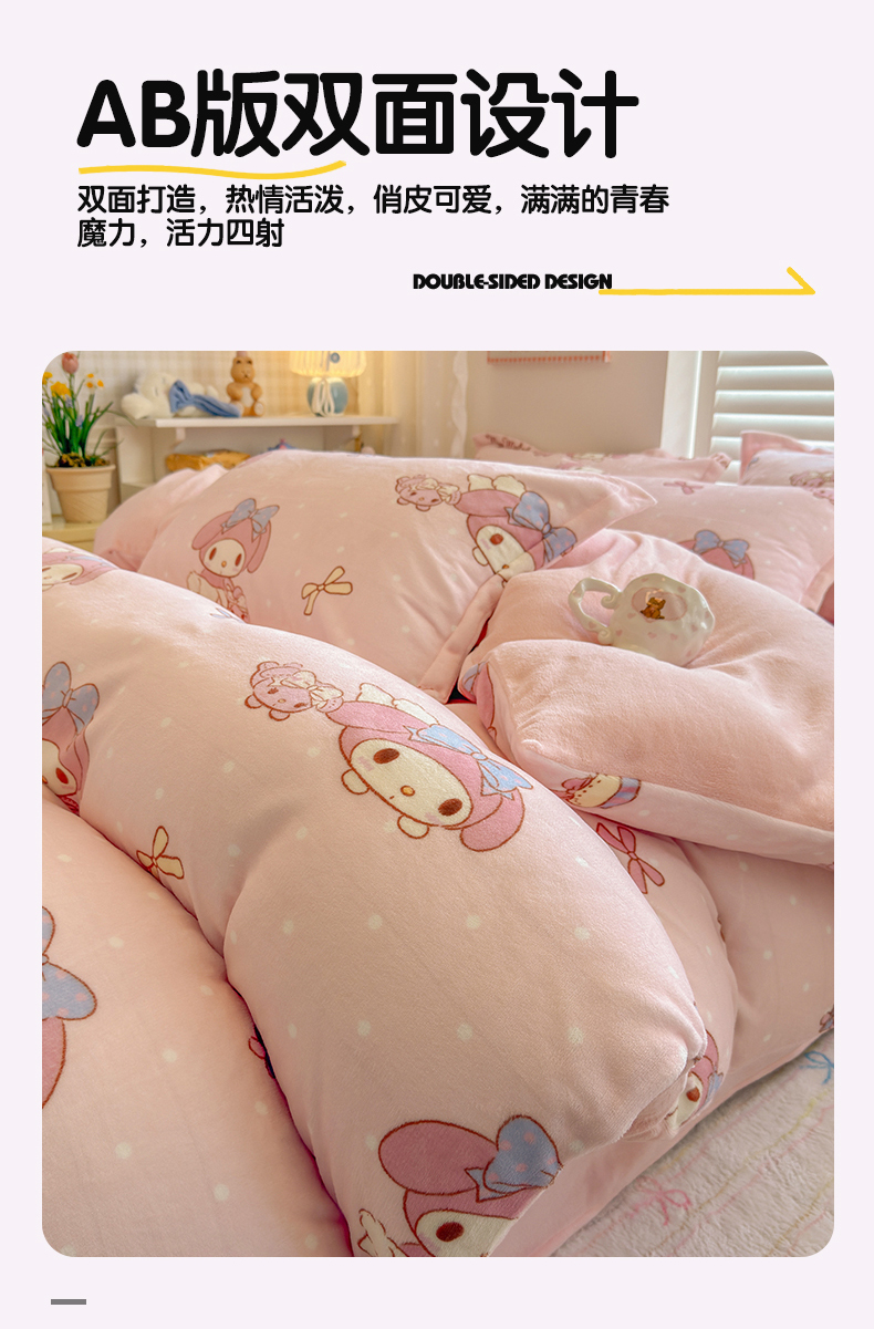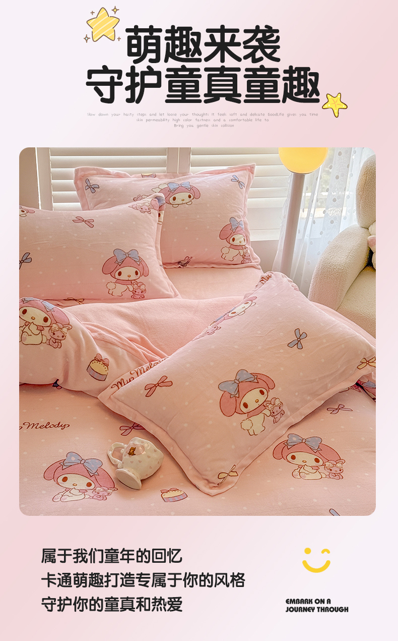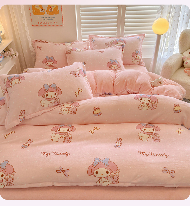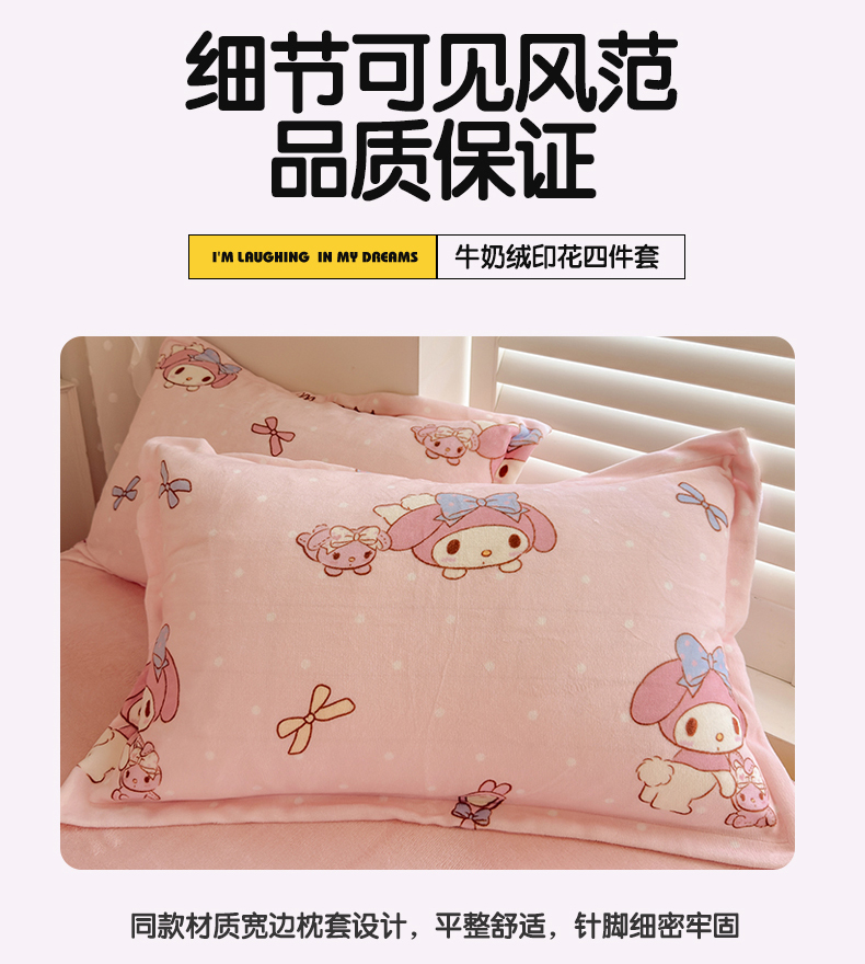 当前位置: 91家纺网 > 商品网购 > 床品套件 > 四件套 > 牛奶绒四件套 > 名兮家居 2025新款经典奥特曼-三丽鸥高克重牛奶绒四件套 点点美乐蒂