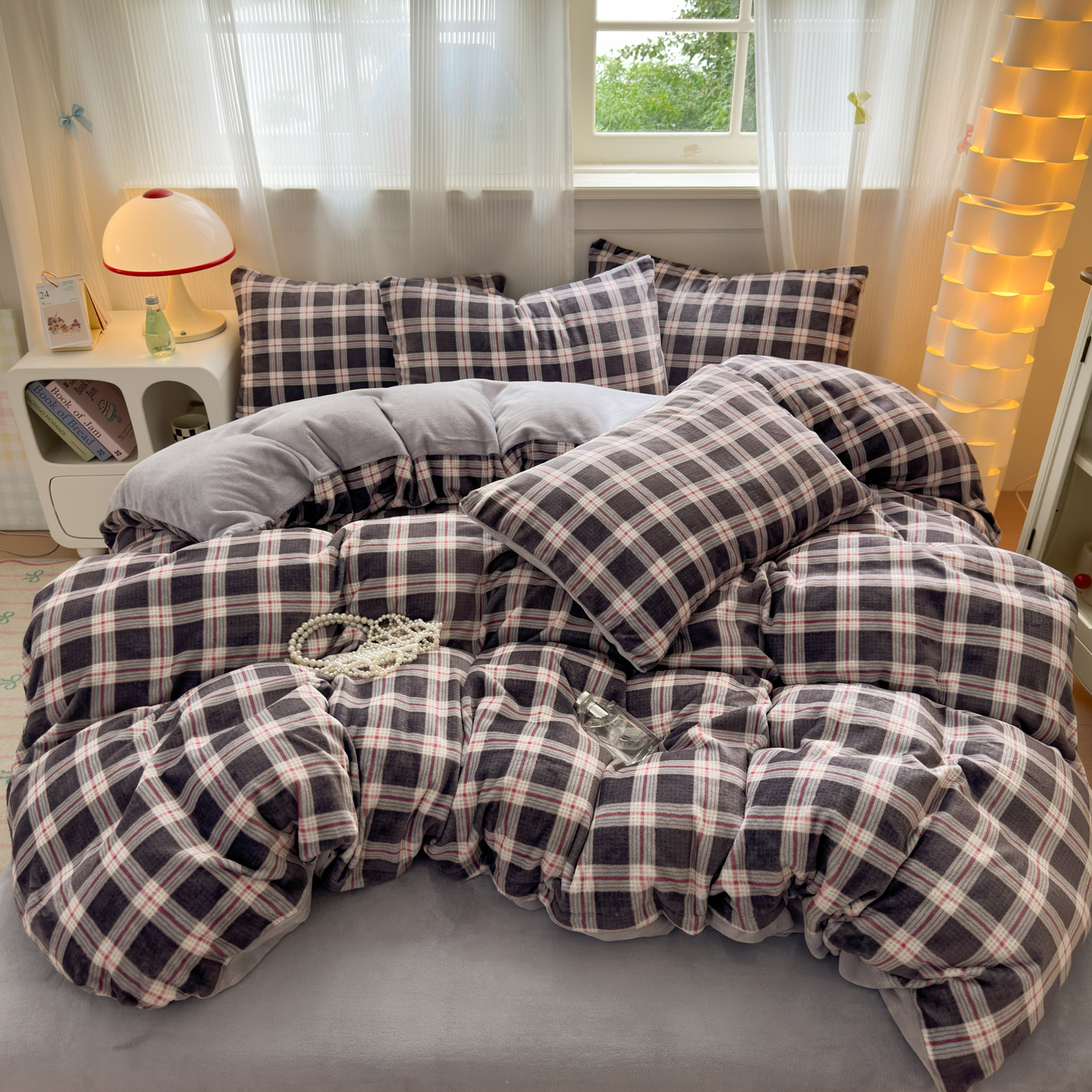 德比尔斯 2025新款暗合印花牛奶绒四件套 布朗尼